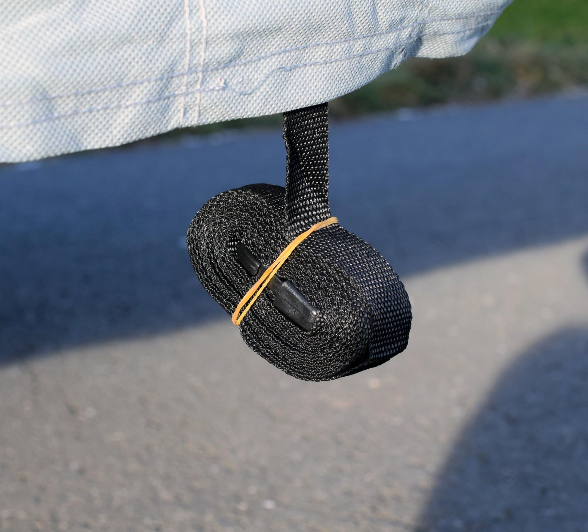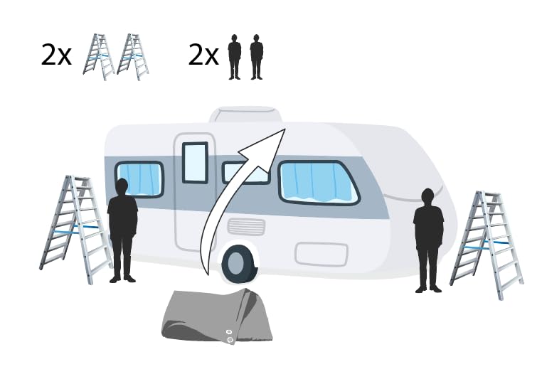 "Incl. fastening ropes with clips under the caravan and storage bag"