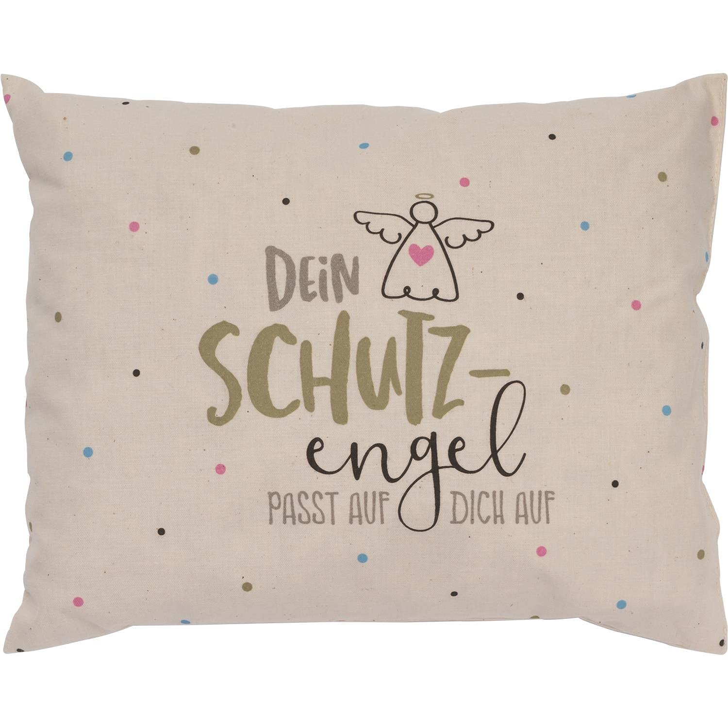 ["FUNNY & LOVING QUOTES: Pillows, decorative cushions, cuddly pillows, and eye-catching decorative pillows in colorful style with funny text for more color in the home and lots of fun while decorating a beautiful home :-) This spruce pillow with a quote is a striking eye-catcher, a trendy decorative item, and a suitable gift idea.","SPRUCE PILLOW WITH QUOTE: Small pillow with reversible motif "Your guardian angel is watching over you", cover made of cotton, filled with spruce shavings, can be scented with organic spruce oil (not included), handmade, dimensions 24 cm x 18.5 cm.","TOTALLY ON TREND: Whether llama, sloth or trendy quotes, colors, shapes, and materials for a natural, sustainable look - we ensure that the latest trends end up at home, with family, friends, and colleagues.","IDEAL GIFT: As a gift for family, friends, colleagues, as a token of appreciation, for a birthday, or just as a thoughtful gift and a small surprise. Suitable as a present for girlfriend, mom, dad, grandma, grandpa, brother, sister, and all other favorite people.","THE BRAND GRUSS & CO: Lovingly designed in Germany by our traditional company SHEEPWORLD AG, since 1997 on the sheep hill in the heart of the Upper Palatinate in Bavaria."]