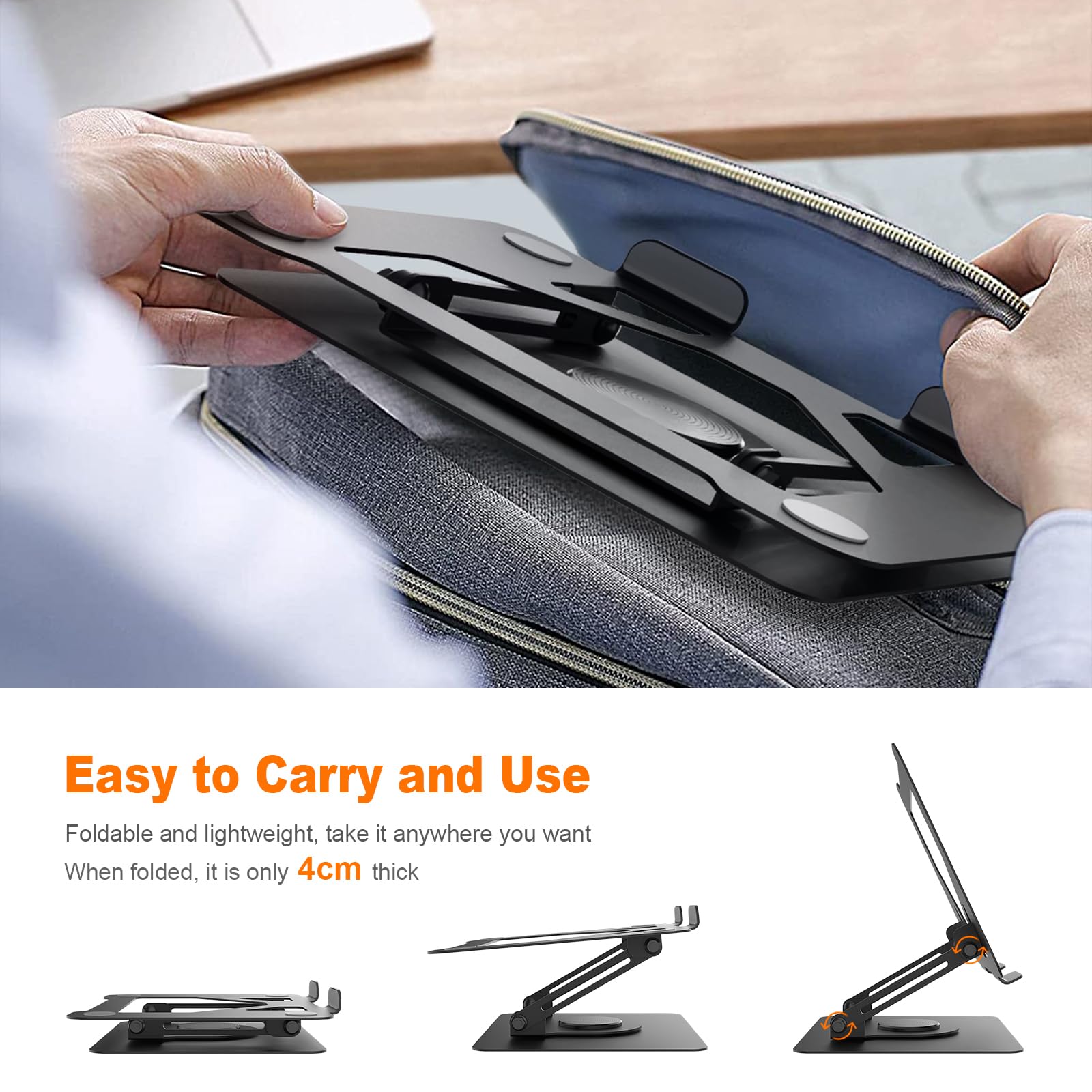 GRIFEMA Laptop Stand Adjustable Height, GB1050 Foldable Laptop Stand with 360° Rotating Base, Ergonomic & Ventilated - Compatible with MacBook Air/Pro, Dell, and 11-17 inch Notebooks - Black