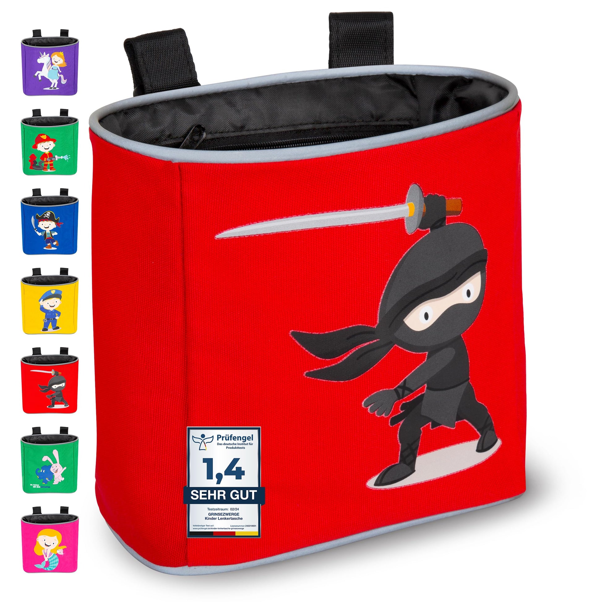 GRINSEZWERGE Kids Handlebar Bag | Balance Bike Handlebar Bag | Bike Handlebar Bag | Bike Basket Bike Bag Balance Bike Bag Handle Basket | Tricycle Scooter Roller Bag Accessory Kids Bike | Ninja