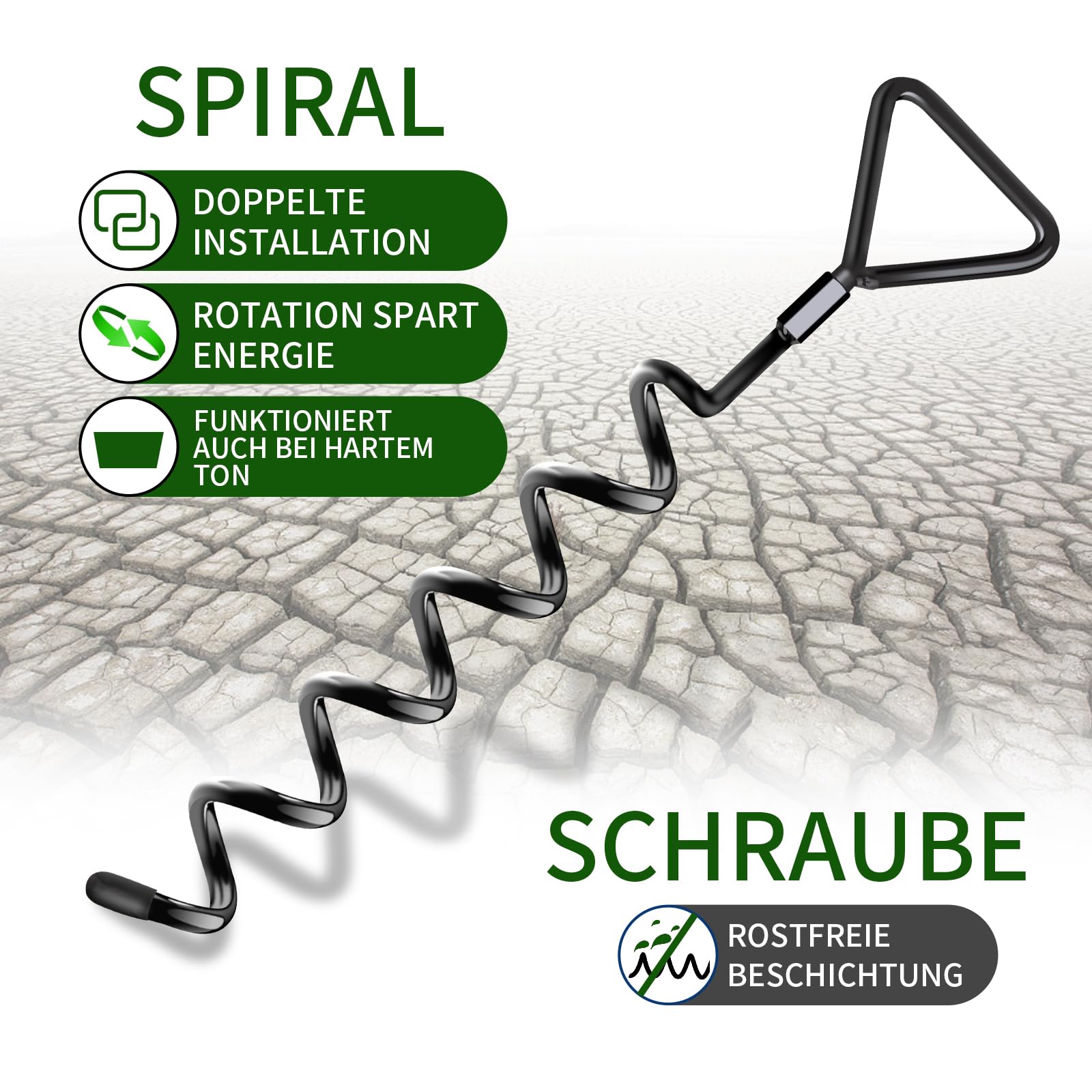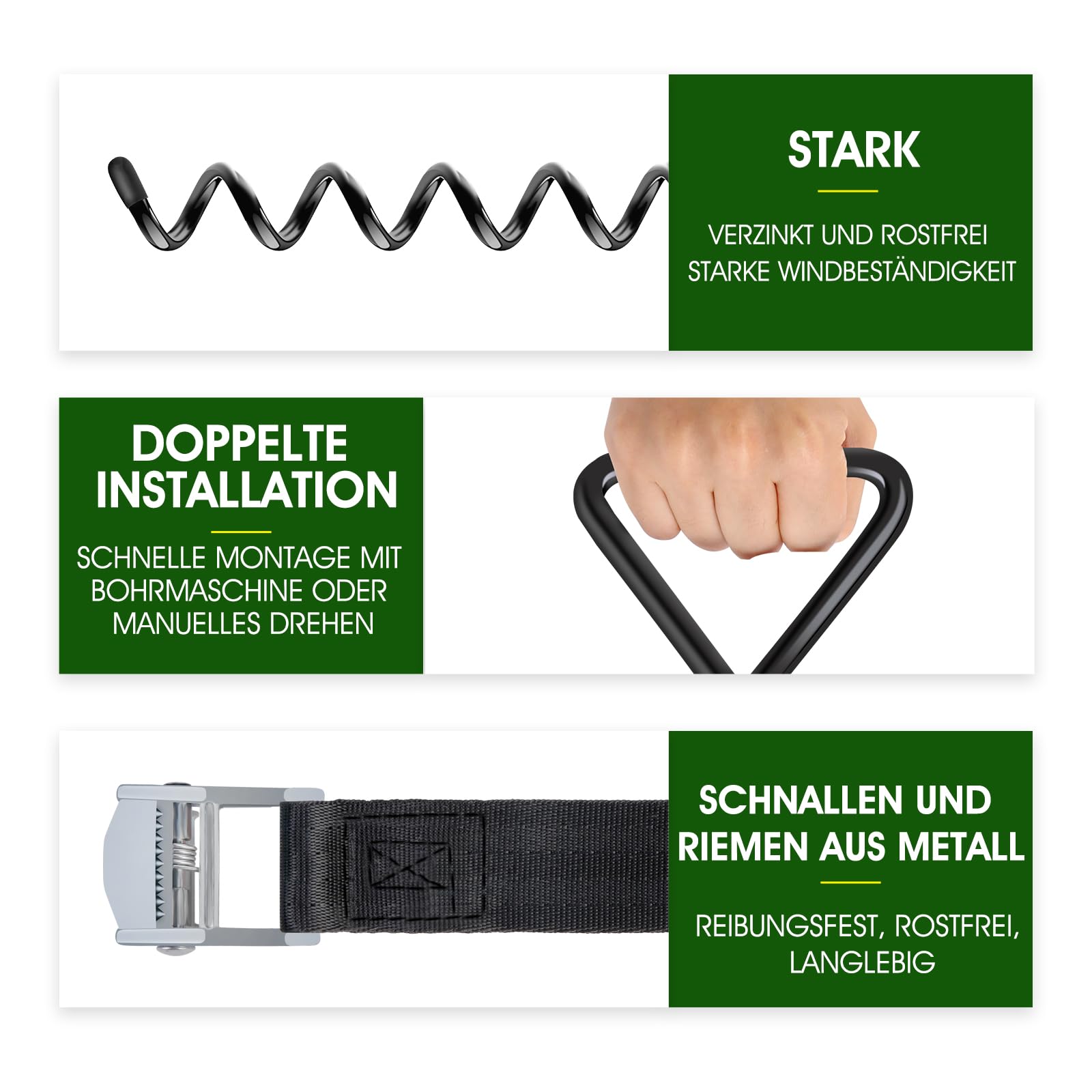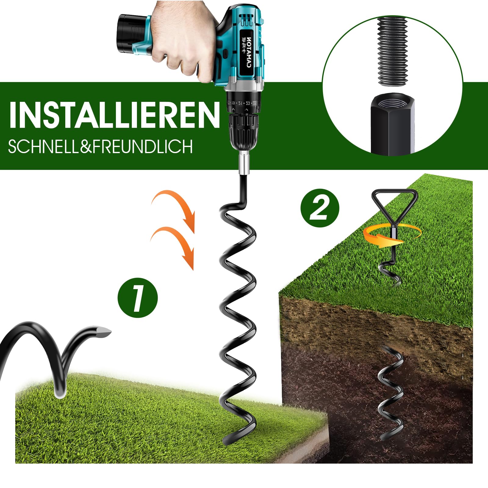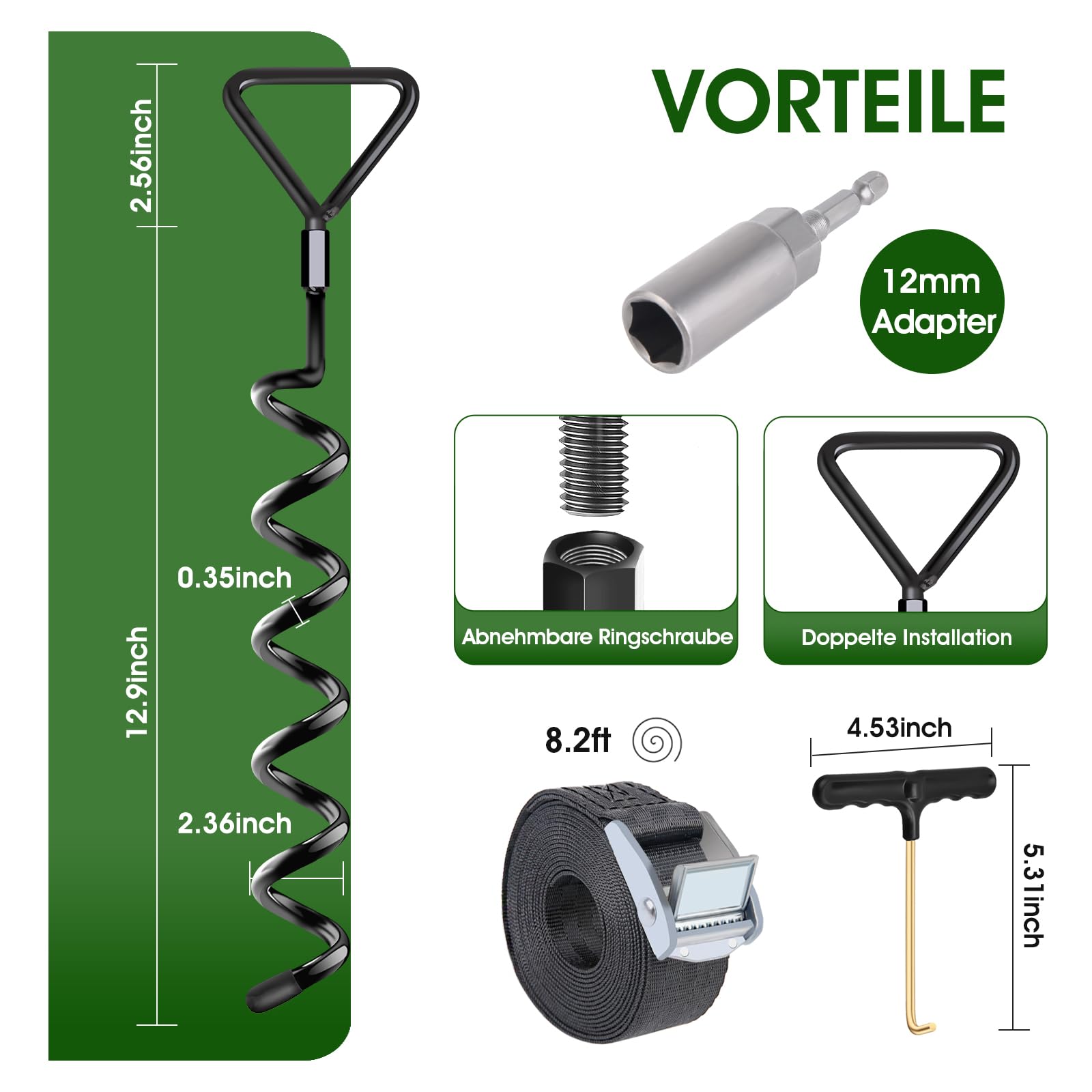 "【INSTALLED WITH DRILL OR MANUAL】Unlike other ground anchors on the market, these anchors have special removable eye screws, it can be easily installed with a drill or by hand. (patented product, infringement will be investigated)