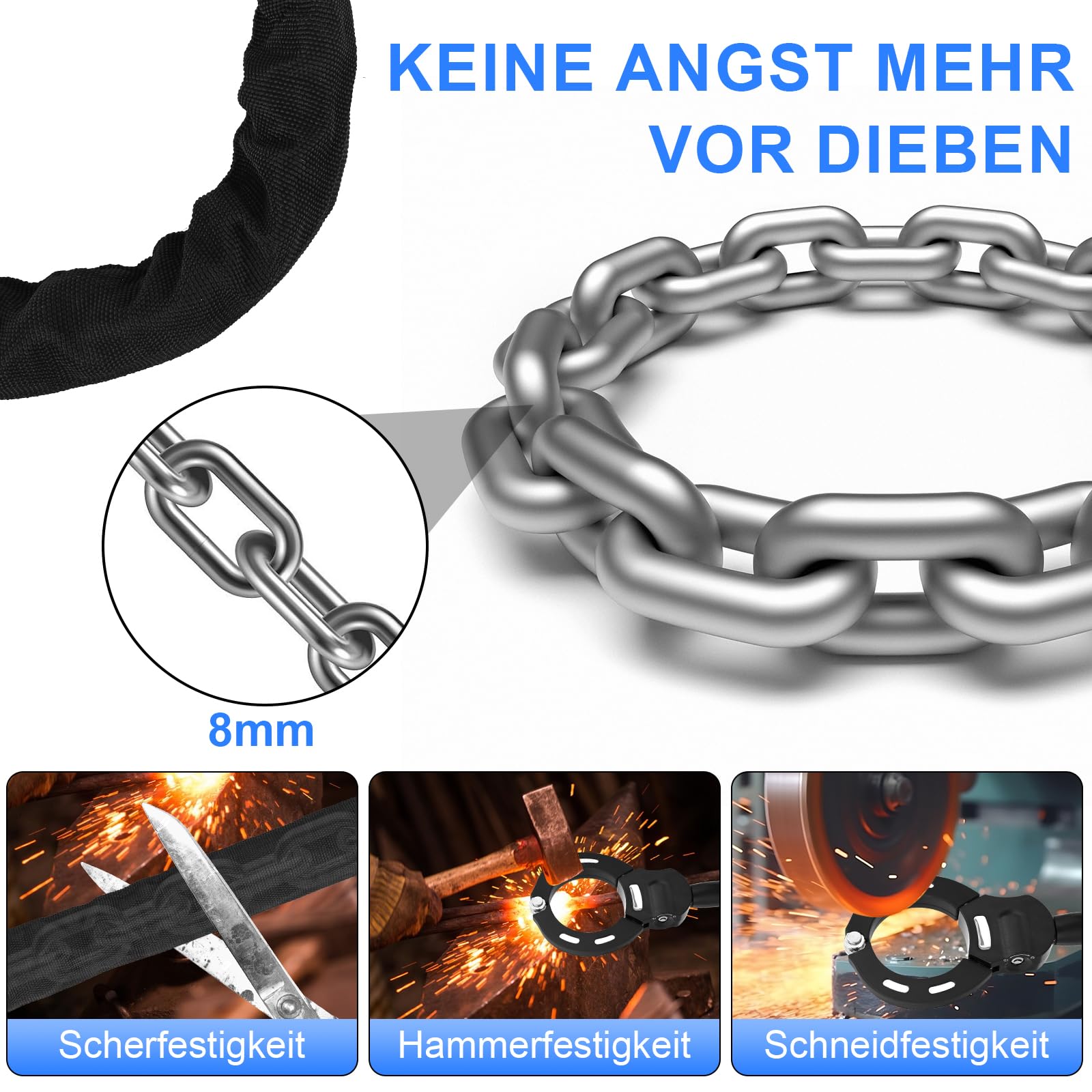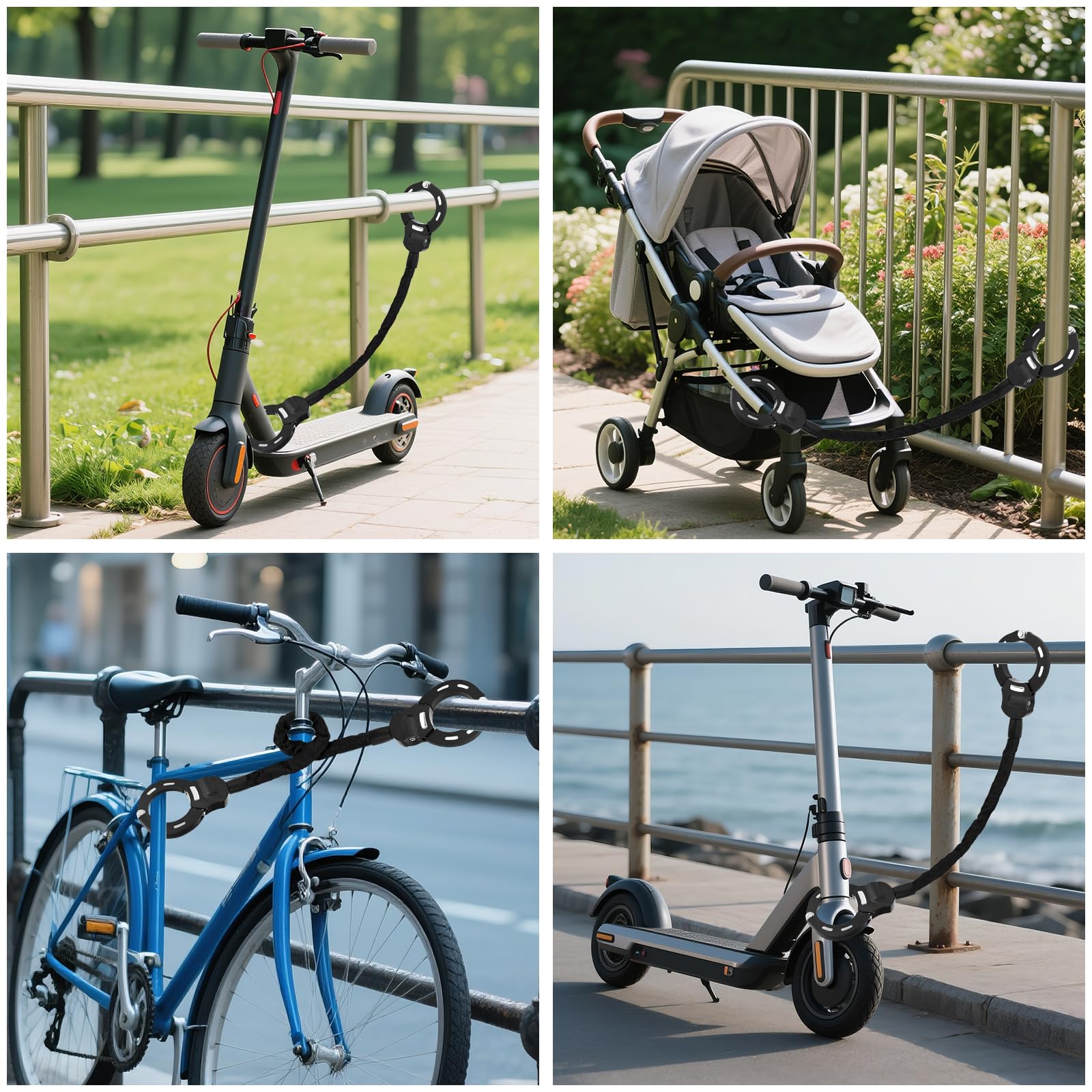 "Long and thick: This E scooter lock (total length 93 cm, chain length 54 cm, weight 1.46 kg) has a longer and thicker chain, is very sturdy and wrapped with high-quality fabric to reduce noise. It looks nice and is scratch-resistant.