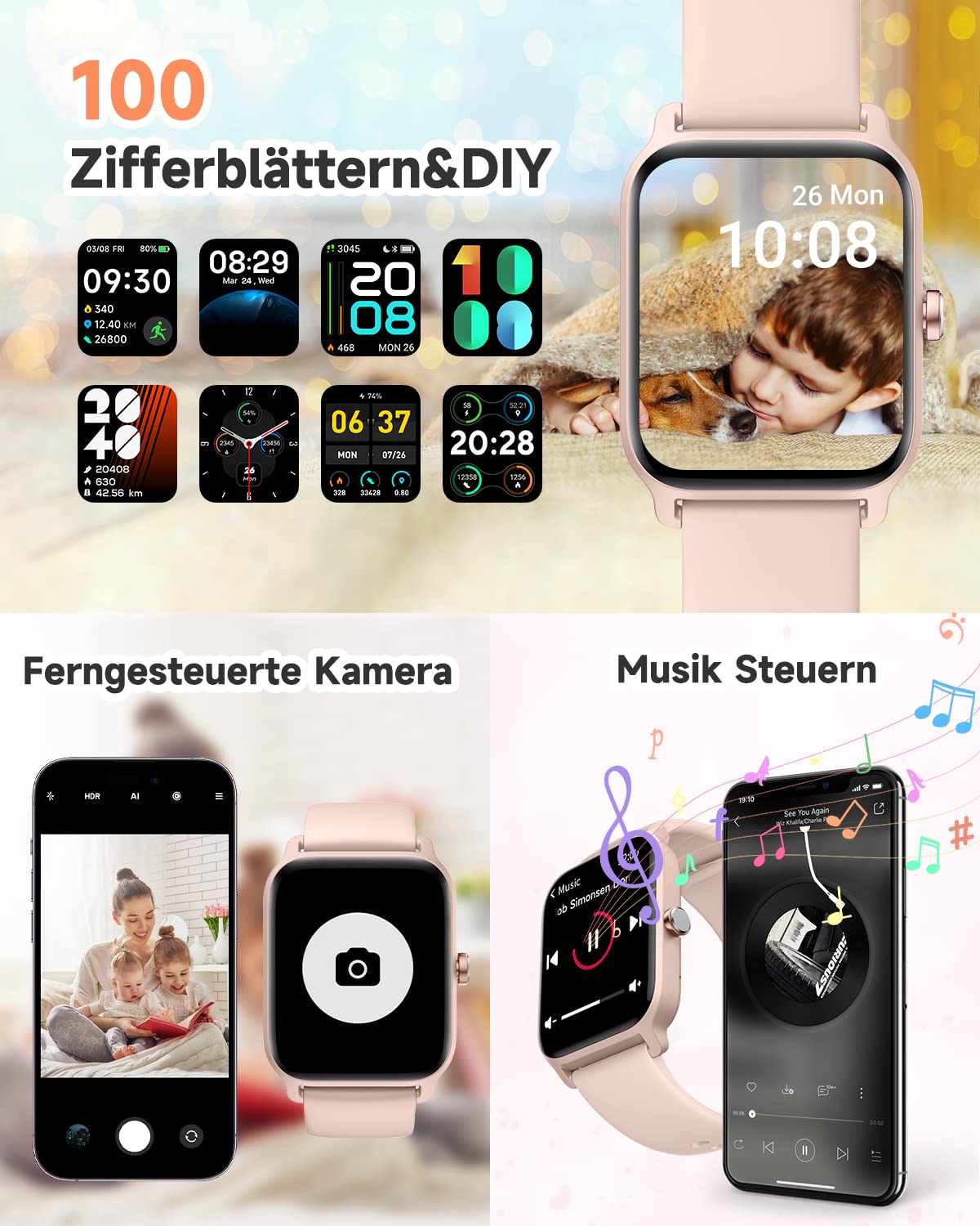 "Built-in Alexa & Bluetooth calling: With the smartwatch for women and men, you can do almost everything with your voice. For example, play music, get information (weather, health or sports data), set alarms/timers, or control Alexa-compatible devices such as speakers, lighting, etc. With this fitness watch, you can keep your hands free. The smartwatch with phone function can make and receive calls, receive SMS and app messages (WhatsApp, Instagram, Facebook, Email, TikTok, etc.) synchronize. So you don't miss any important messages.