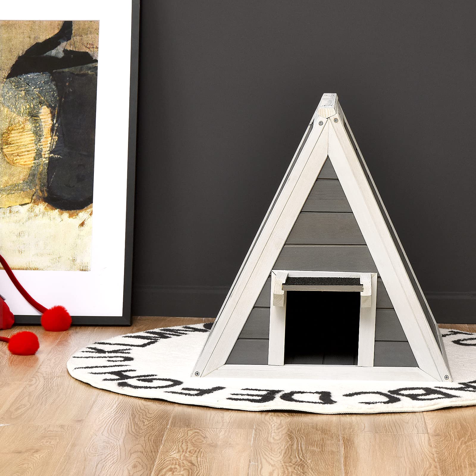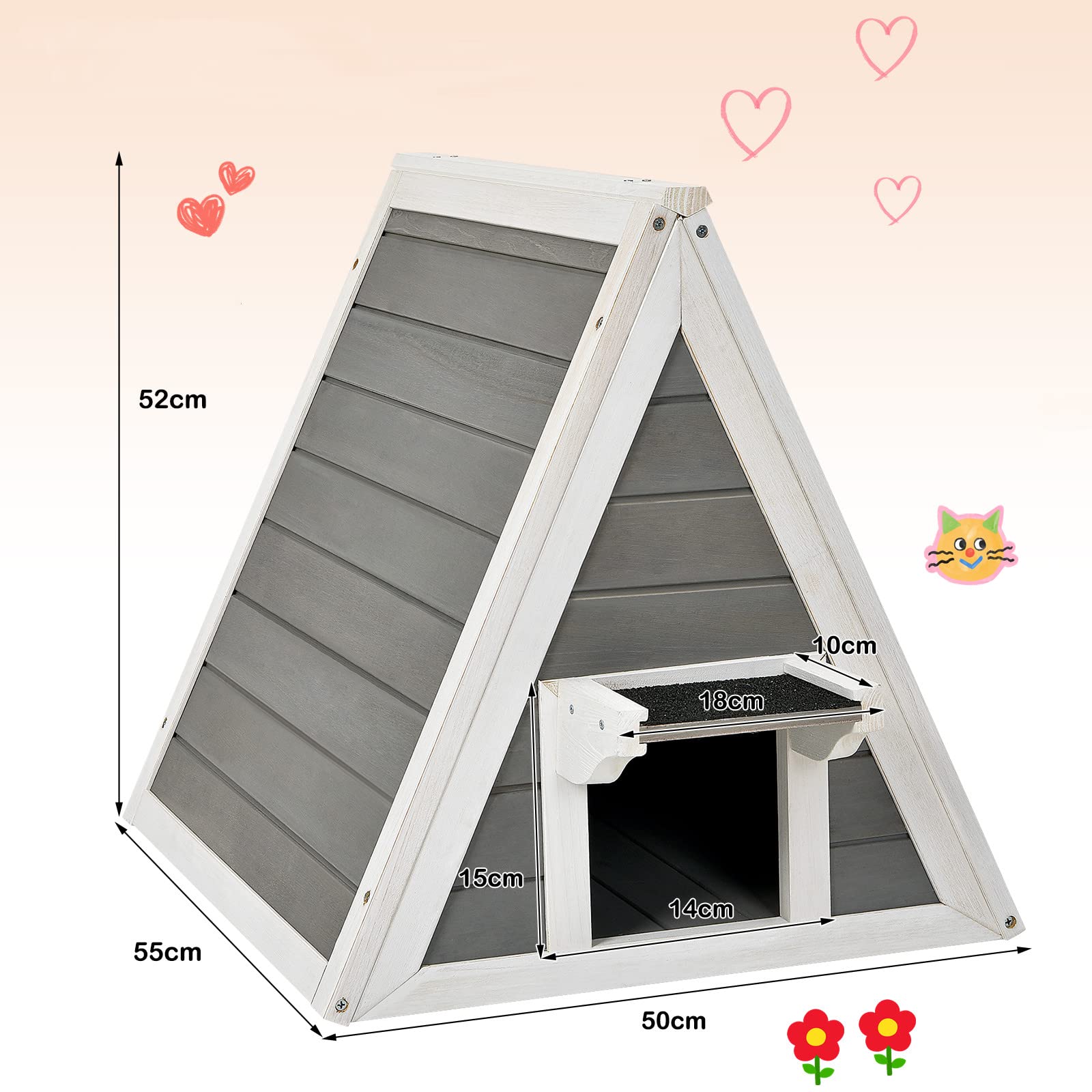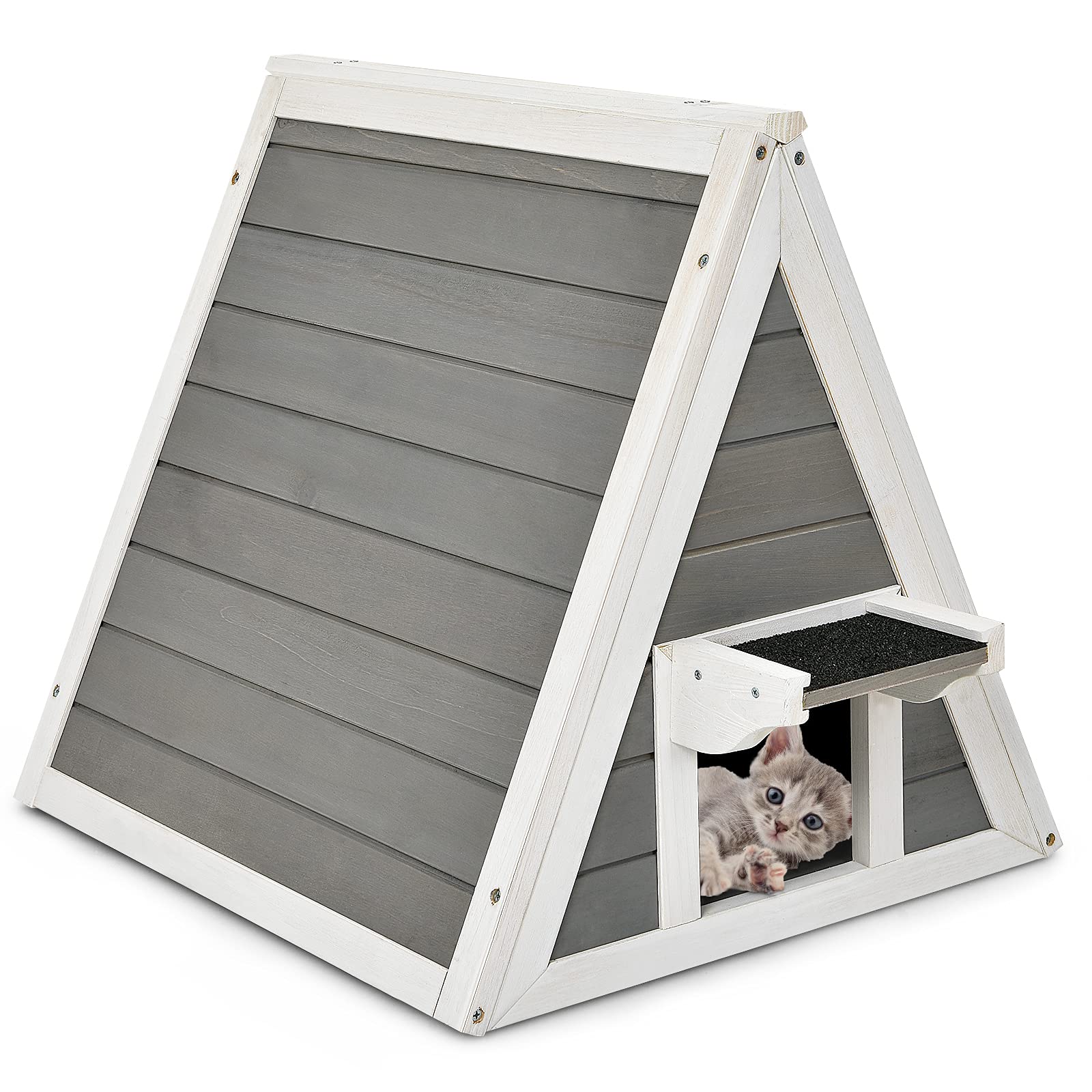 "﹟ Sturdy & Durable ﹟ The cat furniture is made of high-quality pine wood, which is ideal for outdoor use. The thick panels ensure strong durability that withstands weather well. The triangular structure prevents the cat cave from shaking. Load capacity: 44 lbs."