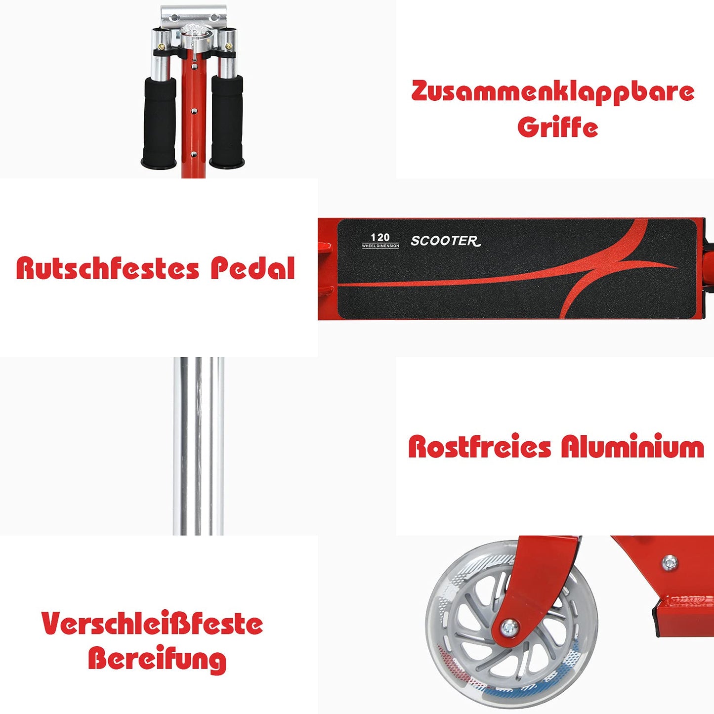 GYMAX Foldable Kids Scooter, Children's Scooter with LED light-up wheels, Kick scooter 3 height adjustable up to 70kg load-bearing capacity, Kick scooter for boys & girls aged 4 years and above (Red)