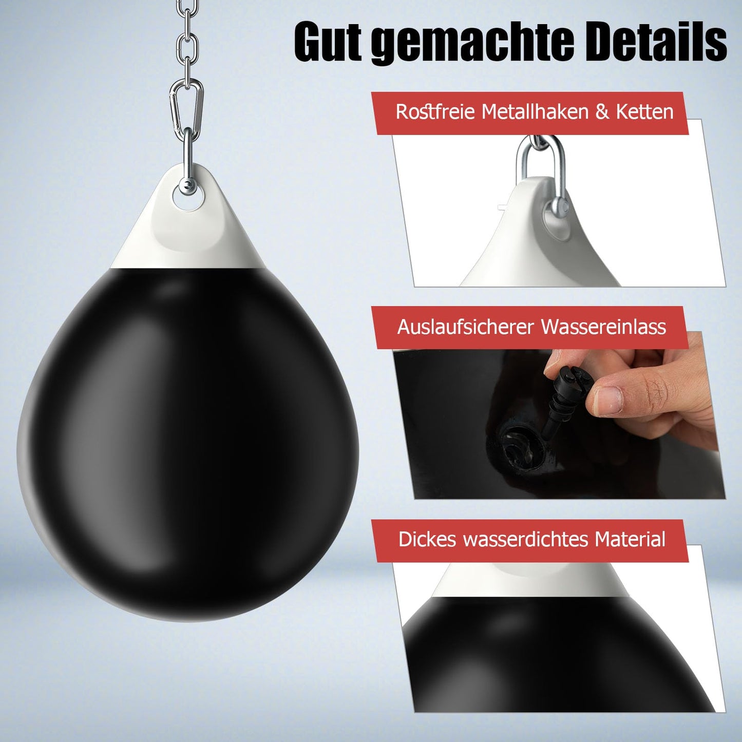 GYMAX water boxing bag Ø45cm, boxing punching bag fillable with water, hanging punch bag, heavy-duty adult & youth boxing bag (black)