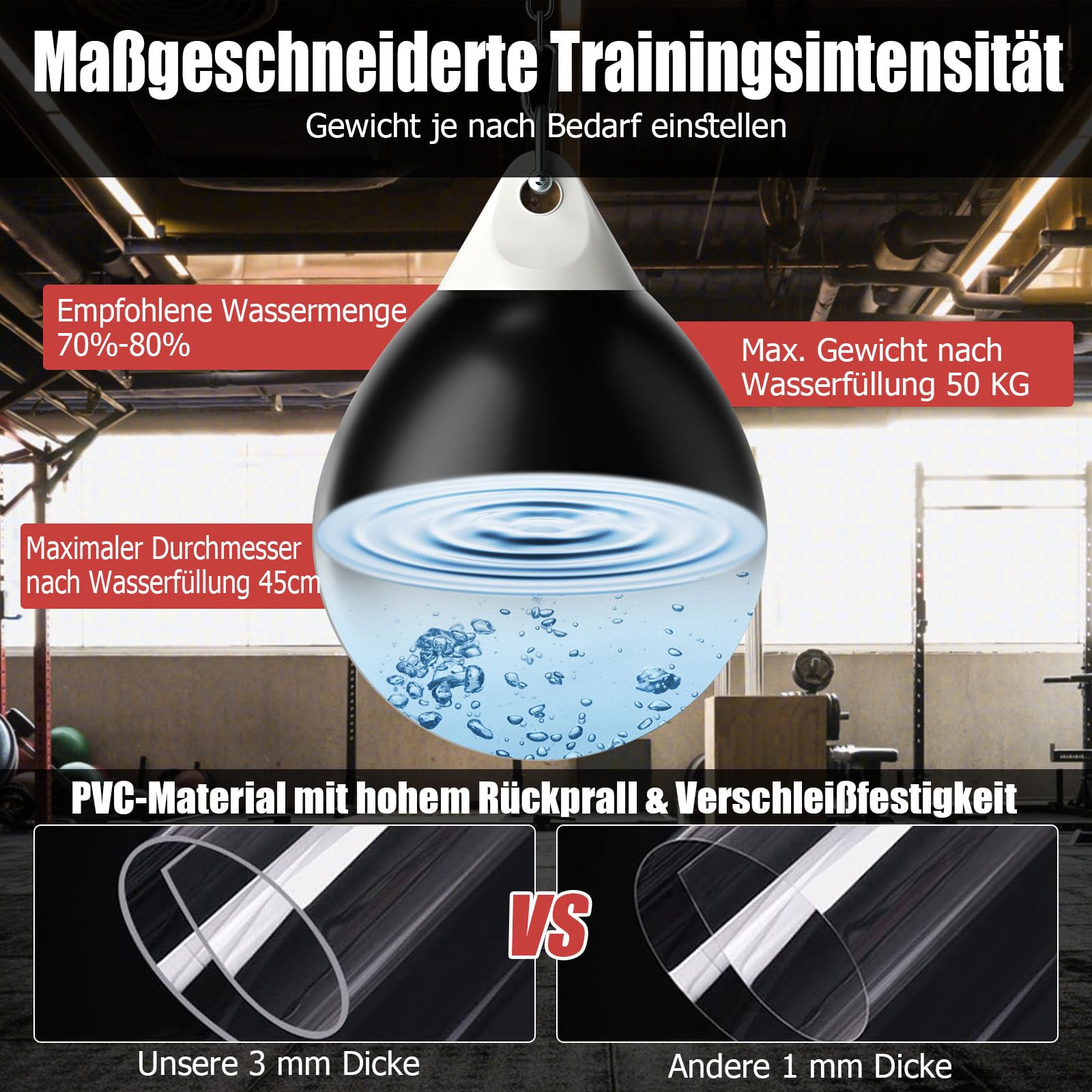 ["﹟🥊 INNOVATIVE WATER-FILLED DESIGN ﹟ Filling the inside of the bag with water gives you a more realistic boxing feel. The water punching bag hits in straight and curved lines to help you perform a variety of boxing exercises and improve your punching ability.",