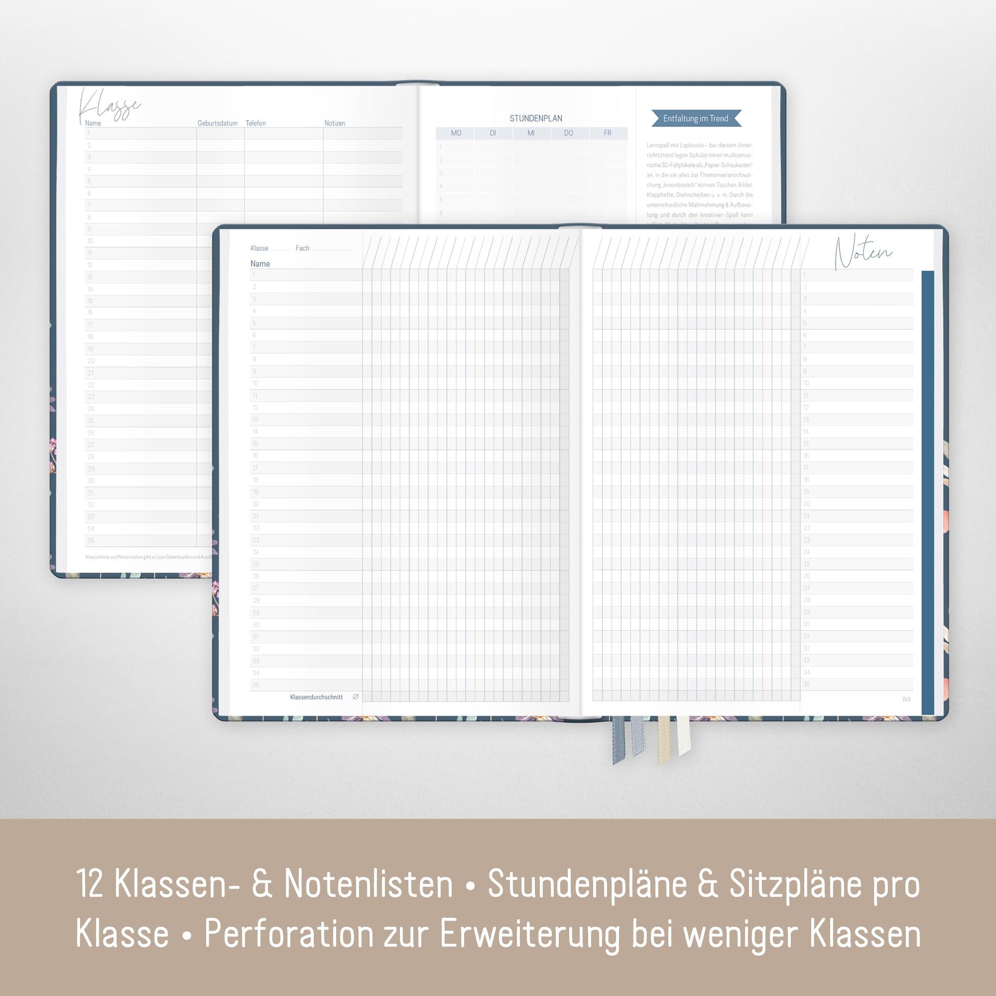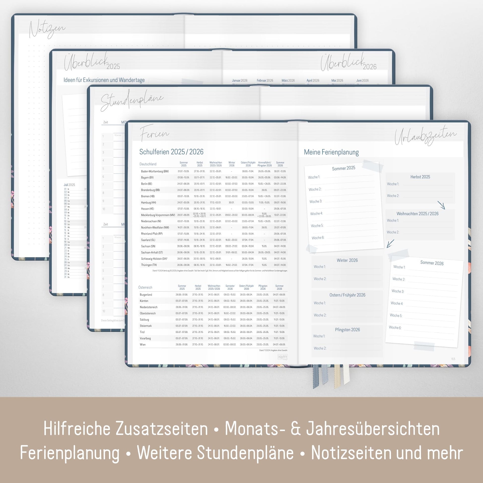 Häfft® Teacher Planner 2025/2026 A5 + "Flying Flowers" Hardcover Teacher Calendar/School Year Planner with 236 pages, stickers, and more - sustainable & environmentally friendly.
