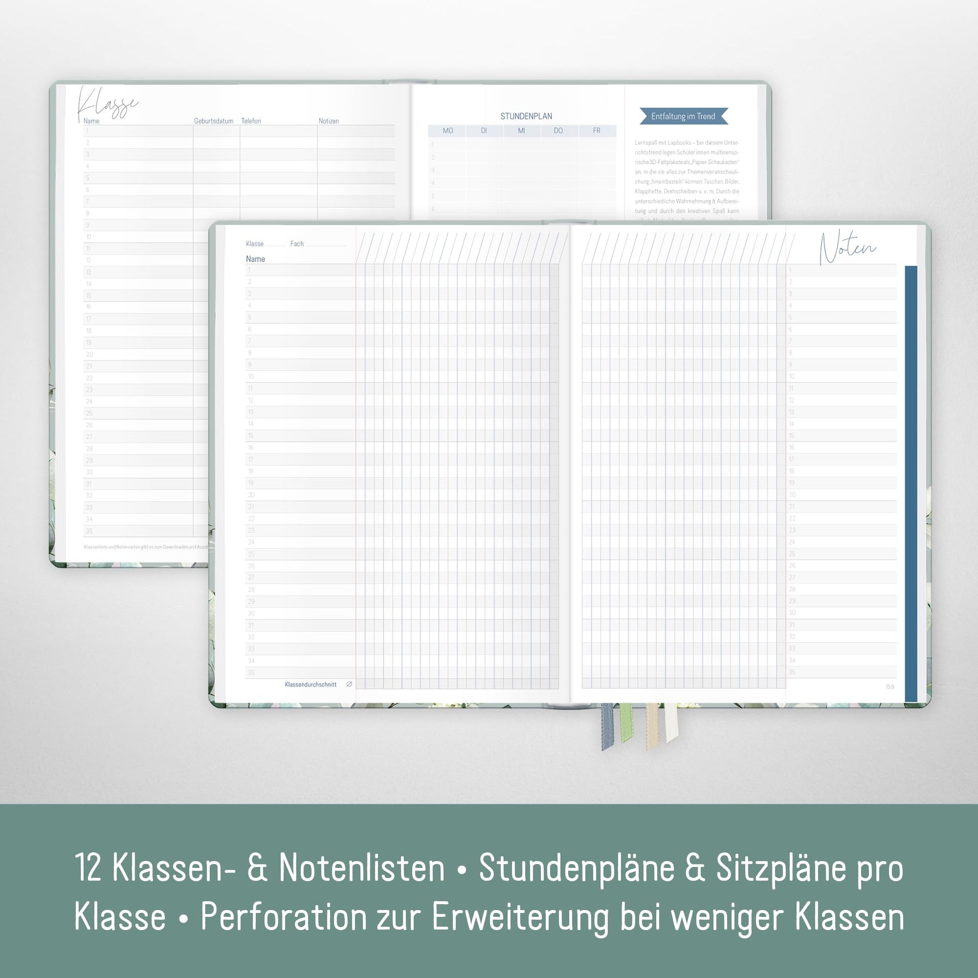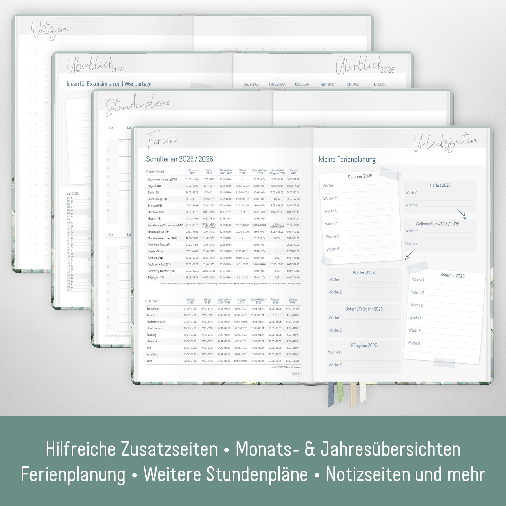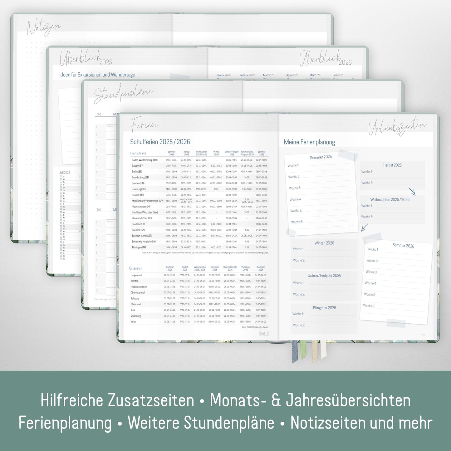 Häfft® Teacher Planner 2025/2026 A5 + "Minty Leaves" Hardcover Teacher Calendar/School Year Planner with 236 pages, stickers and more - sustainable & eco-friendly
