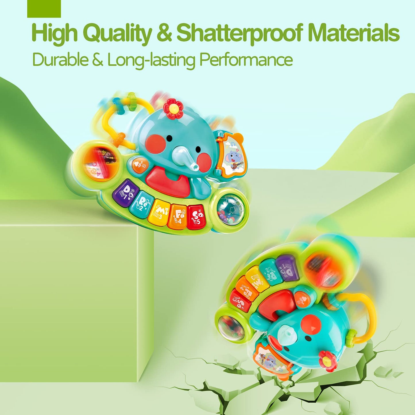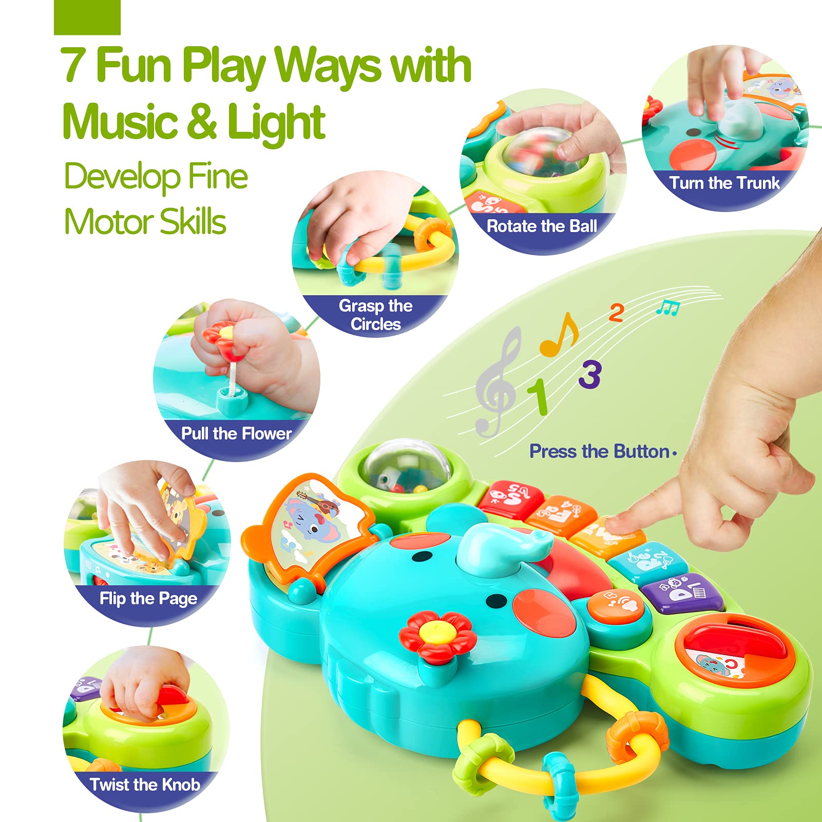 Hahaland baby toy for 6 months old girls, elephant musical toy motor skills toy, musical instruments with light & sound children keyboard baby toy for 1 year old girls boys.