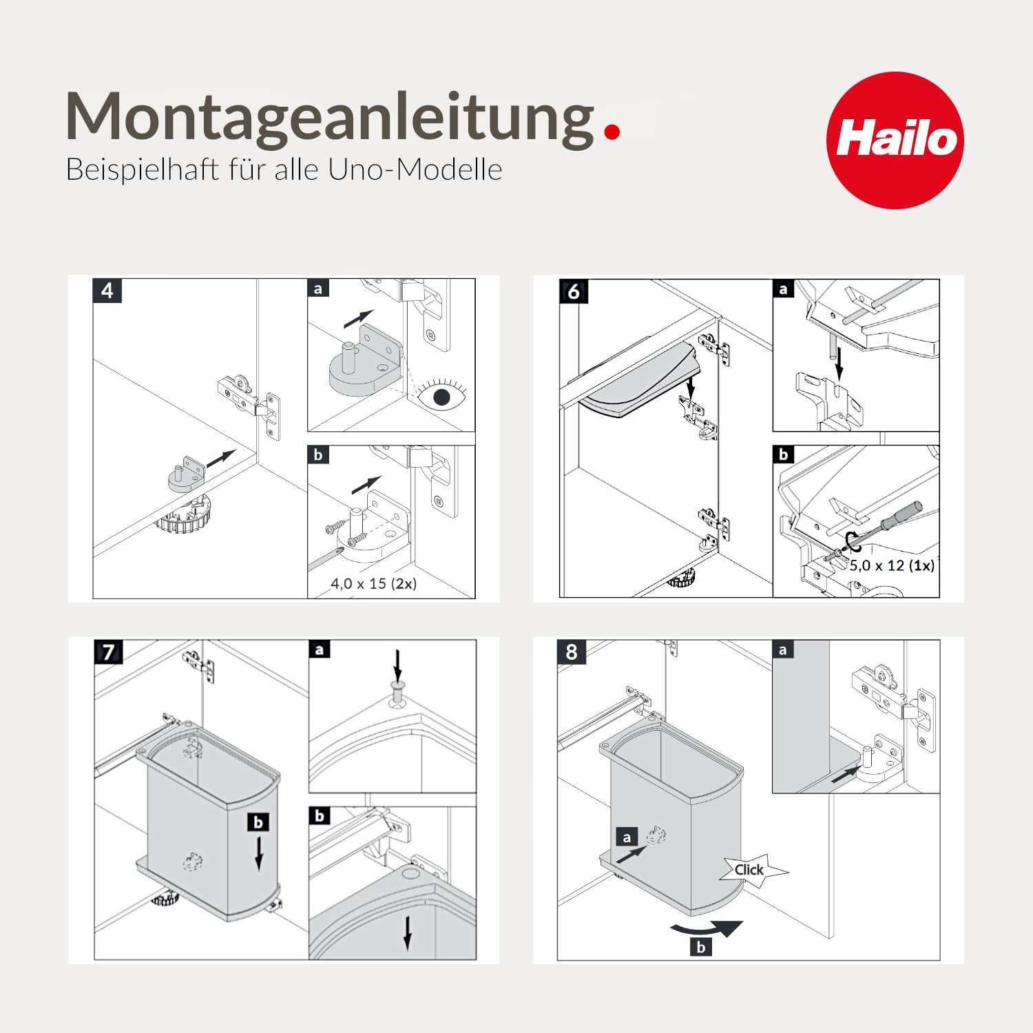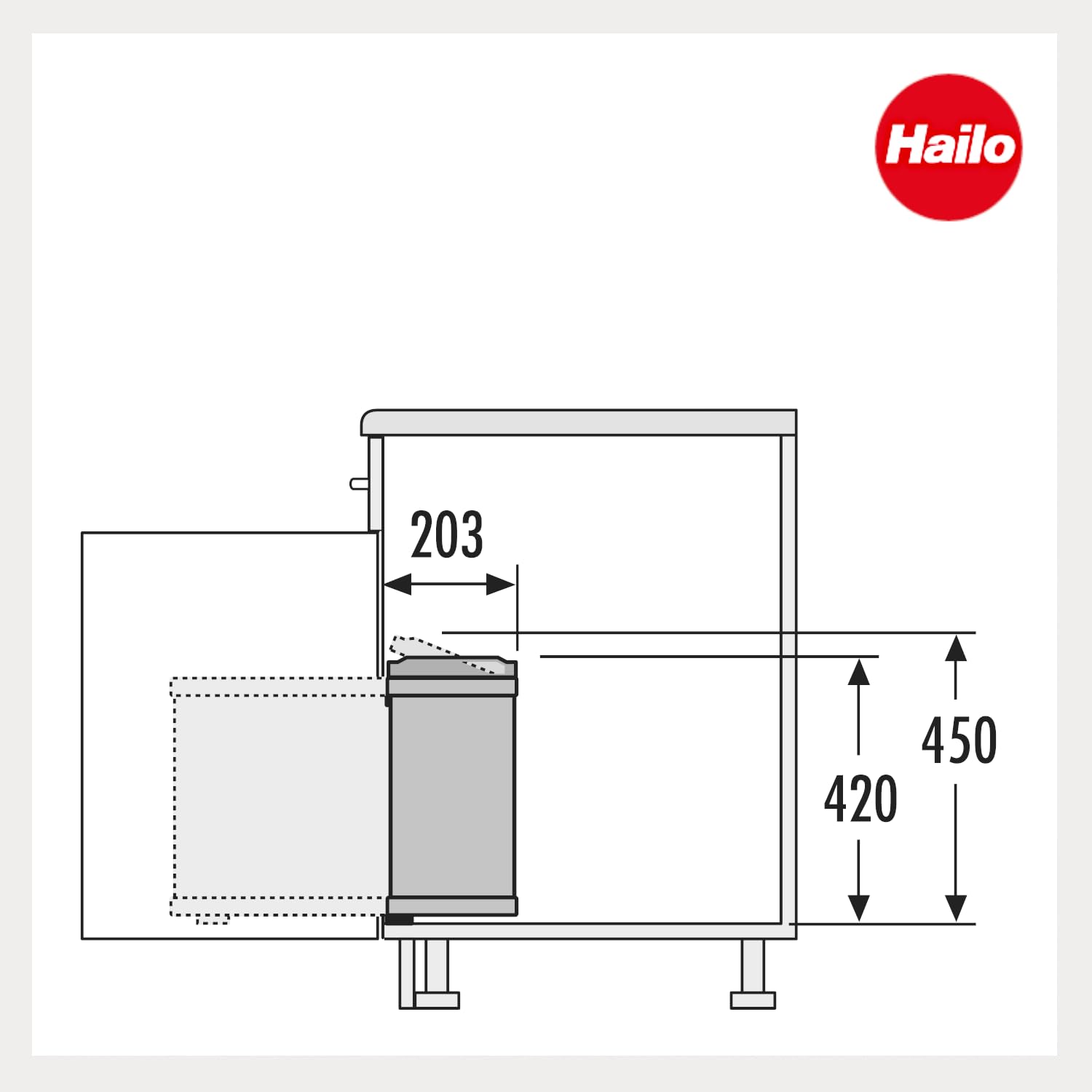 "HAILO SWING BIN WITH 1X 18 L INNER BUCKET - A practical waste system for kitchens. The 18-liter inner bucket can be easily removed and cleaned.