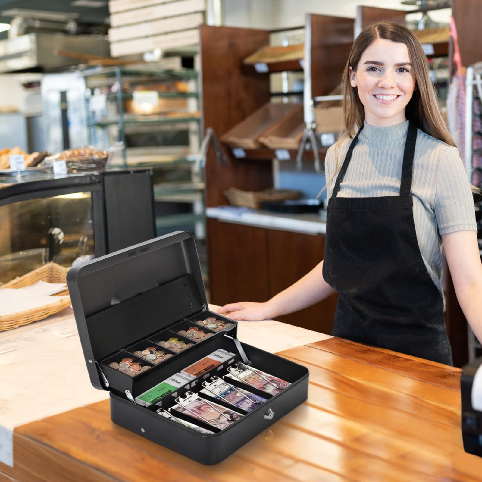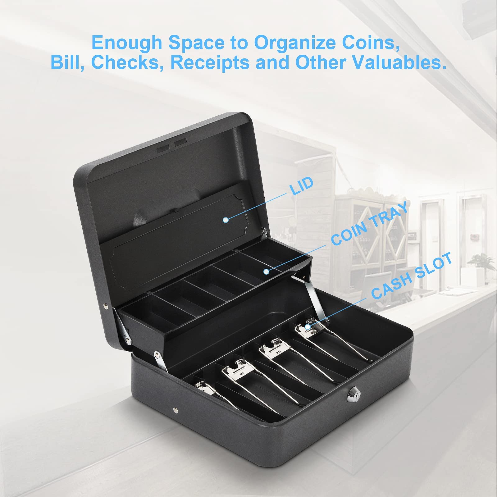 "It can be opened with one hand, easy to use, and suitable for home, office, supermarket, etc., to ensure money security at home or on the go.",