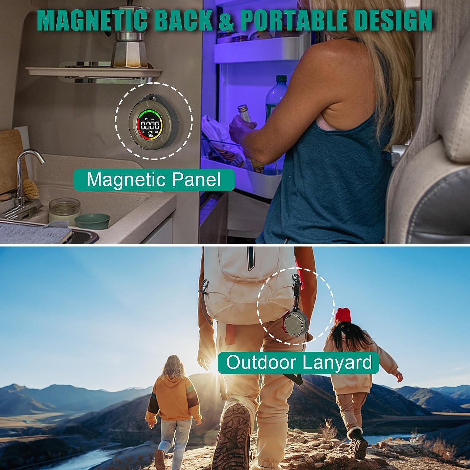 HAKINAKU Portable CO Detector Carbon Monoxide Alarm, Mobile CO Detector CO Warning Device, CO Meter with Temperature & Humidity Display, for Travel Camping, PTH-10D-Green