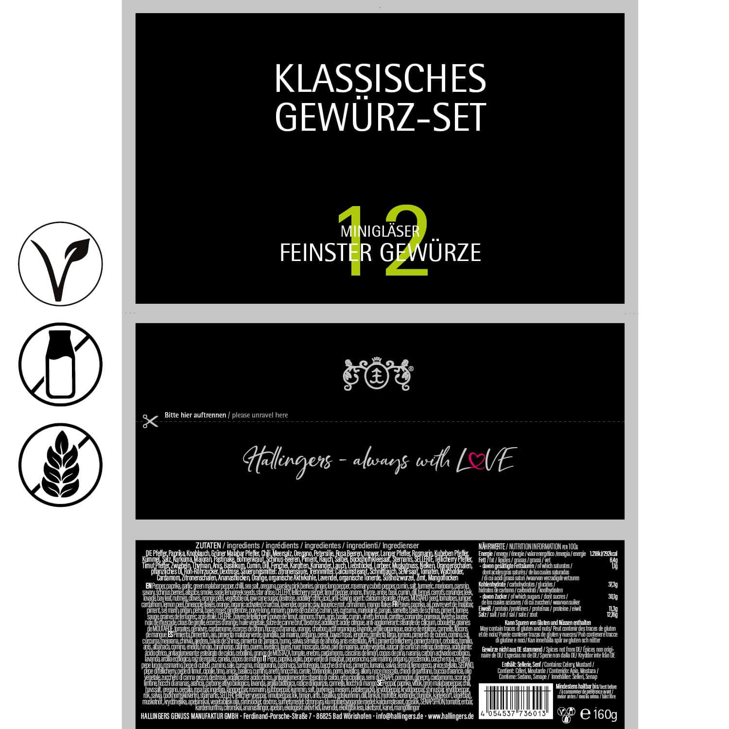 Hallinger Classic Spice Set - 12 high-quality spices luxury gift set, intense aroma in screw-top jars, carefully selected variety (set) - Christmas gift ideas & gifts advent calendar |