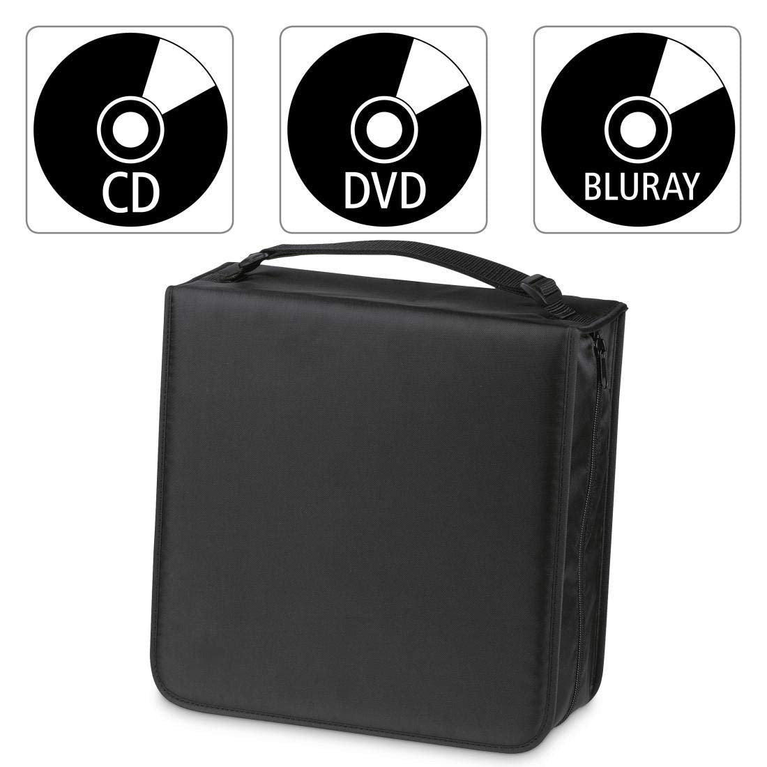 Hama CD case with cleaning cloth for 304 discs/CD/DVD/Blu-ray (folder for storage, space-saving for office, living room, and home, transport cases) Black