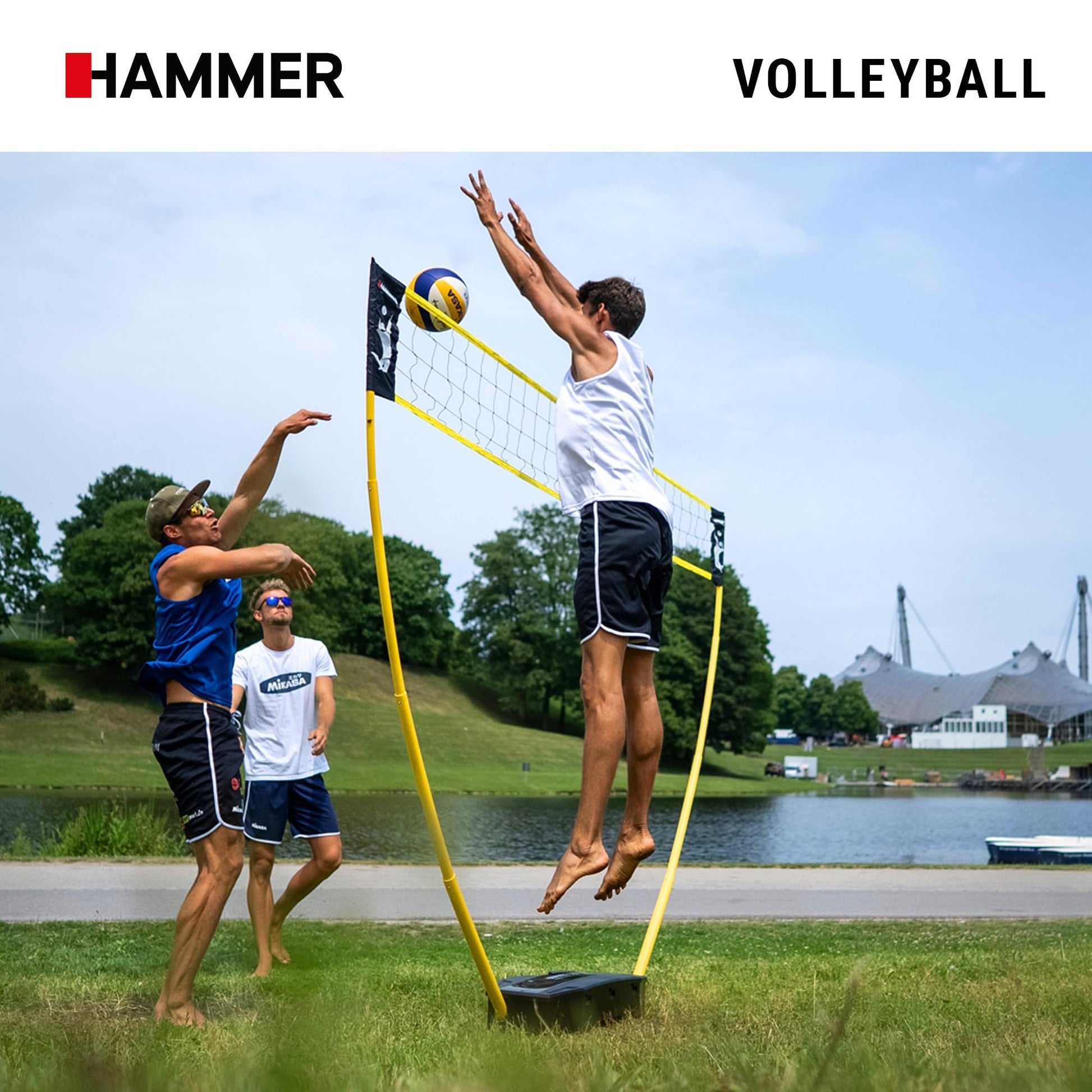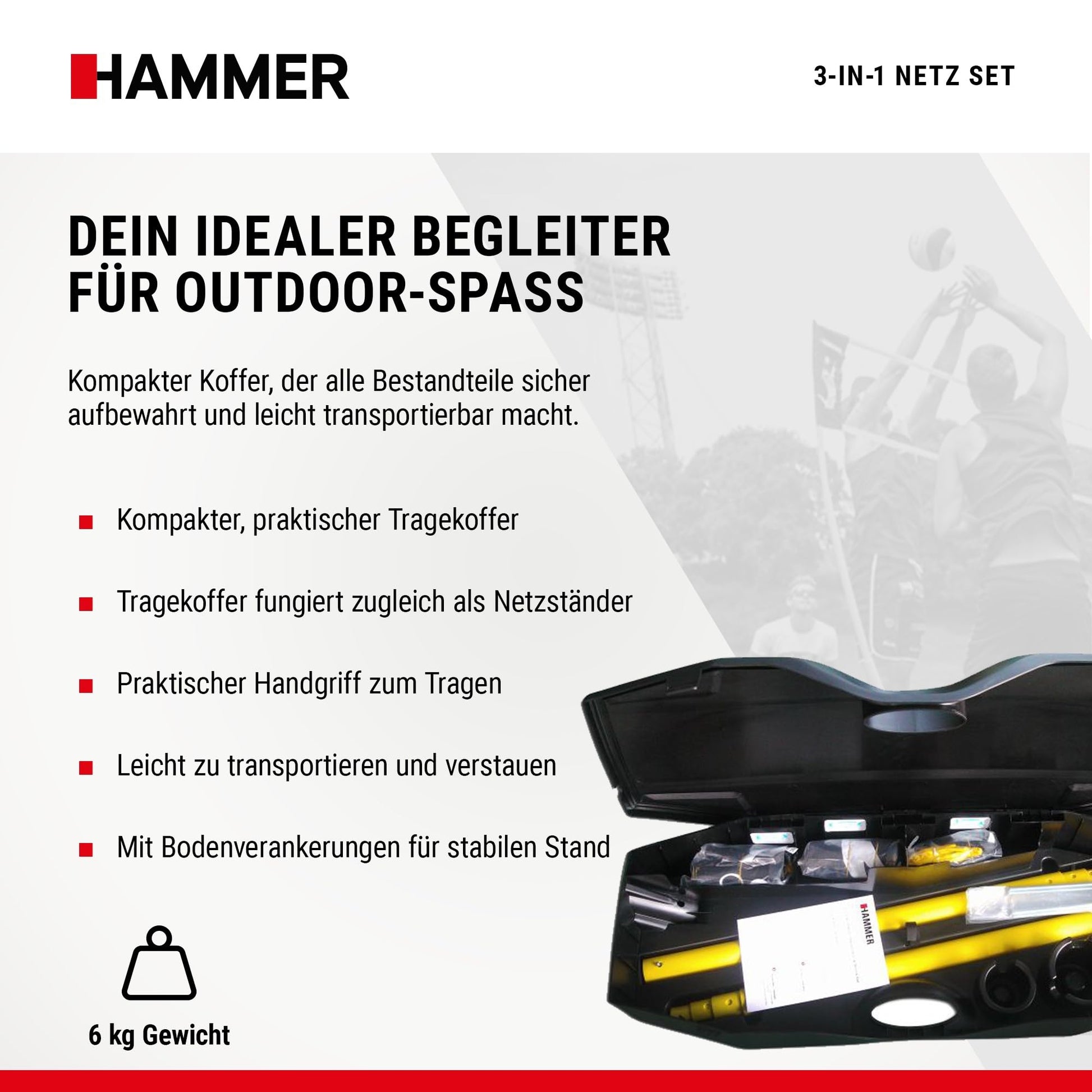 HAMMER 3 in 1 Net Set for Volleyball, Badminton & Tennis, fun for all ages, with carrying case/post stand, easy setup, quick to store and easy to transport.