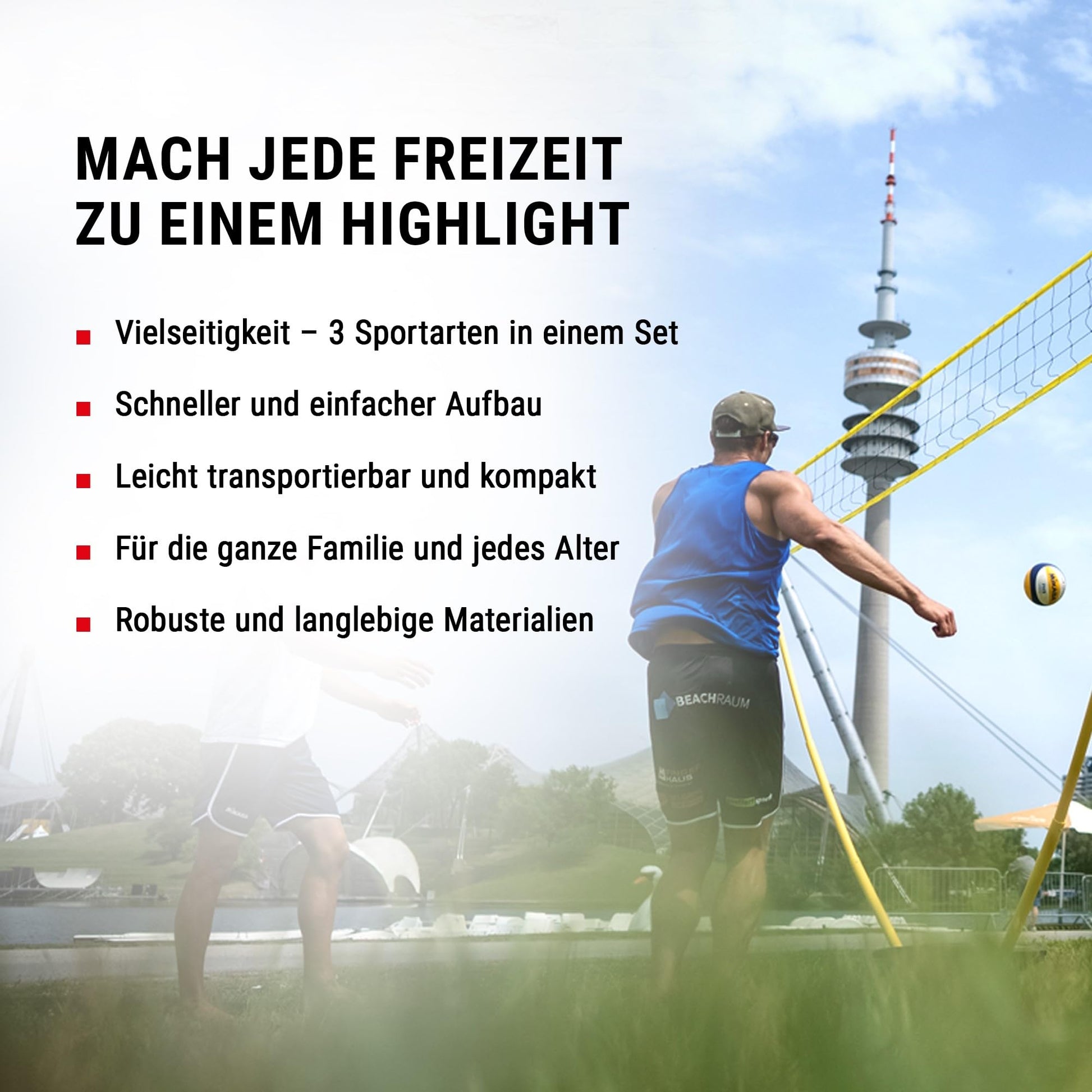 ["3-IN-1 NETS SET FOR OUTDOOR BALL GAMES: Whether it's volleyball, badminton, or tennis - everything is possible!",