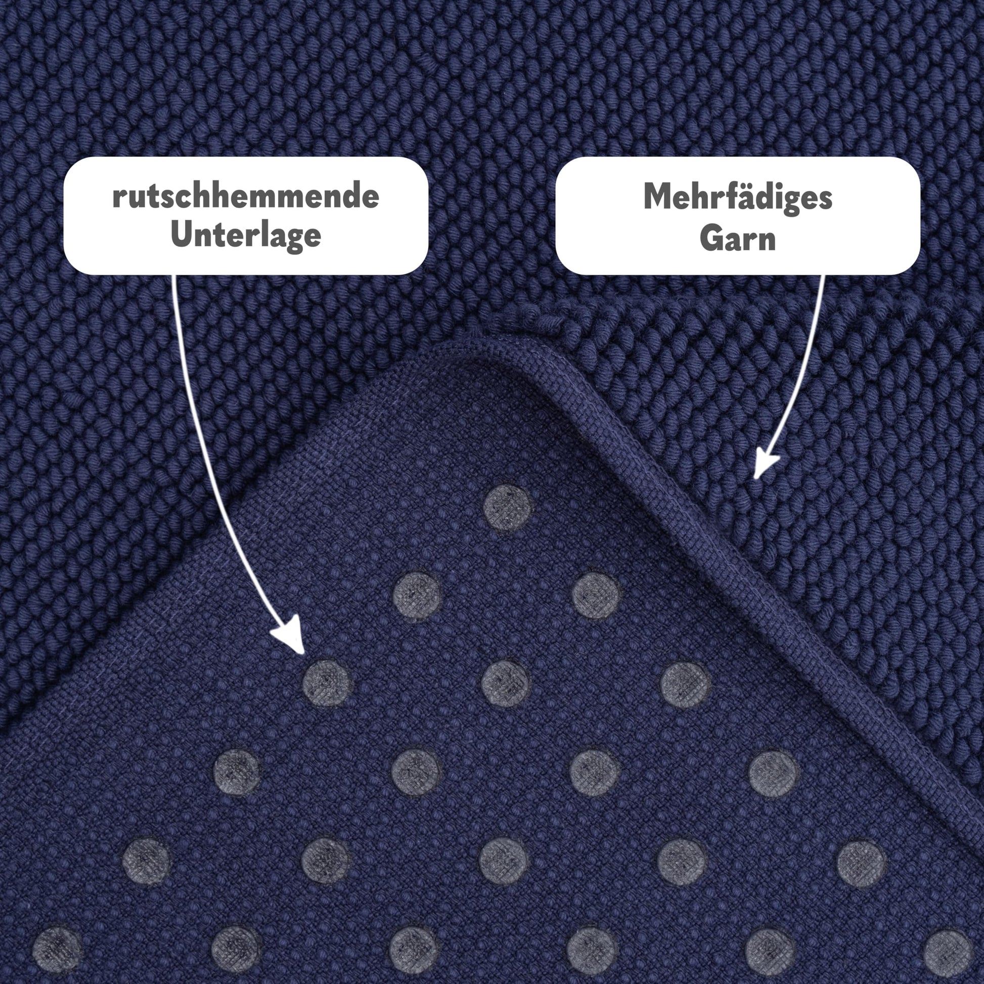 Hammetex 100% cotton non-slip bath mat, 43x61 cm bath rug for bathroom toilet, absorbent quick-drying washable bath floor mats, navy blue