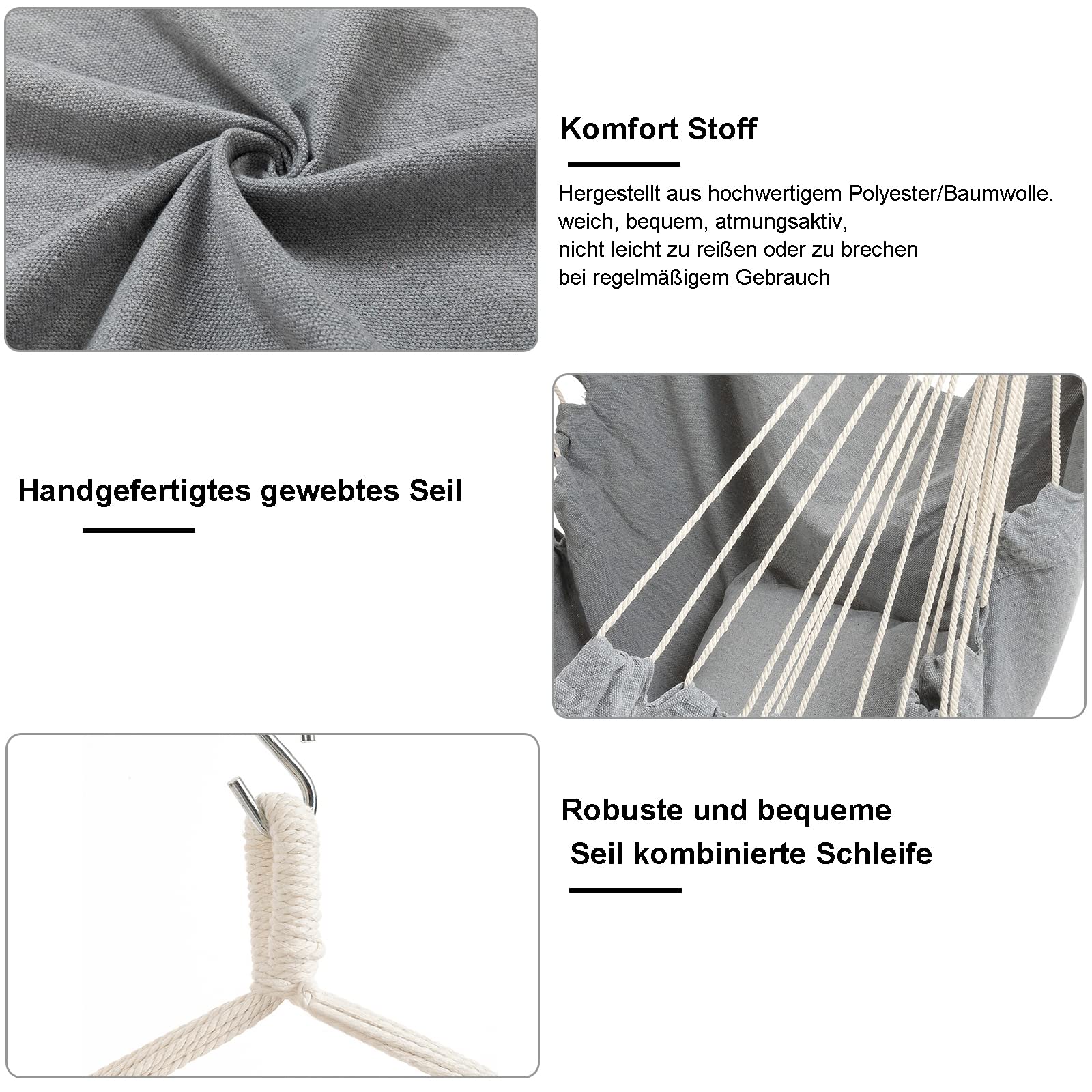 After-sales Service-We are committed to providing high quality products and excellent service. Any problems, please contact us in time, we will help to solve the problem as soon as possible. (Package includes: 1x hanging chair, 1x 200 cm rope, 1 x S hook, 2 x pillows).""
