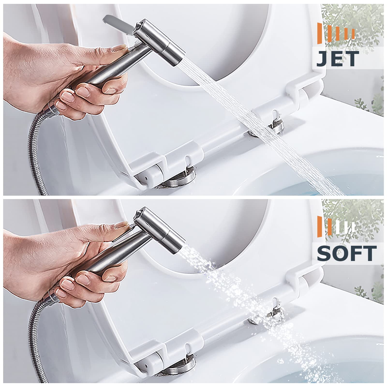 ["Multi-function Bidet Sprayer】During this special time, we need to pay more attention to hygiene, the toilet shower head can ensure that the spread of bacteria in the household is reduced and leaves no stains. The shower head can be used for washing your body, baby, female hygiene products, diaper cloth cleaning, pet bathing, cleaning toilet, or wall corners.","【The Perfect Alternative to Toilet Paper and Wet Wipes】The bidet sprayer has a comfortable handle, powerful when gripped, this handheld bidet sprayer delivers a well-cleaned feeling that traditional methods cannot provide. Imagine a new way of cleaning that is not only more hygienic but also gentler on your skin. Thorough cleanliness without the harshness of paper or chemicals. That means less pain and itching. Just with water!","【Environmentally Friendly】Products equipped with integrated water-saving technologies provide a perfect water experience. So reducing water and energy consumption goes hand in hand with perfect comfort and appealing design. Perfect enjoyment. For people with difficulty moving after surgery, arthritis, postpartum, or injury. Relieve constipation, hemorrhoids, or UTI.","【Easy Installation and Use】No need to drill holes. It can be installed in minutes. Includes bracket and mounting materials The adapter is G1/2 inch and the hose is 120CM. We also provide 3/8 inch screws. You are free to switch between G1/2-3/8 interfaces.","【What You Get】Your package will come with 1 x handheld shower + 1x 120cm hose +1 x G1/2 valve + 1 x G3/8 screw interfaces + 1 x bracket + 1 x hook + 1 x rubberized fabric + 2 x screws + 1x filter. Our worry-free 18-month warranty and friendly customer service. No risk - buy our product with confidence and you will love it."]