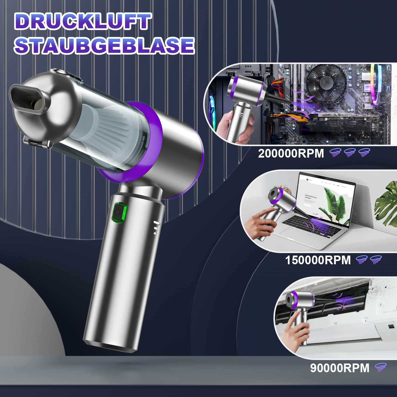 【Multiple Accessories Application】This battery handheld vacuum cleaner is equipped with various nozzles, flat nozzles, and brushes to remove dust and dirt in the gaps and corners of your home and car. The large capacity dust container can hold more trash, and the long and short blowing nozzles meet the requirements for cleaning deep and shallow gaps. The vacuum nozzle can be used for inflating and sucking air into storage bags, swim rings, and balloons. This car vacuum cleaner, rechargeable handheld vacuum cleaner is a perfect alternative to compressed air tanks, which is great for outdoor travel.
