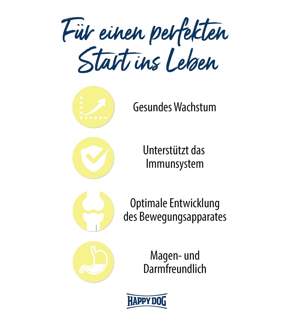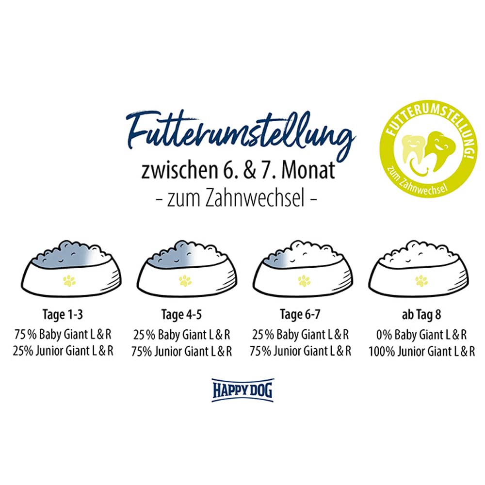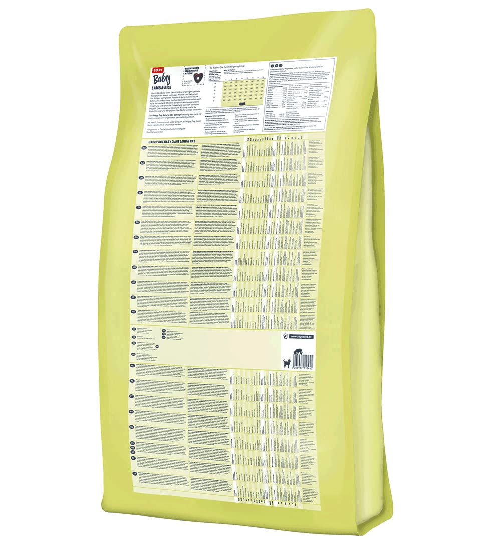 "Quality - The Happy Dog Baby Giant range convinces puppies of large breeds and owners with XXL heart-shaped kibbles for easy chewing and optimal digestion in the stomach from 1-6 months old","Sustainability - The dog food for young dogs is produced in a responsible manner from high-quality ingredients of sustainable agriculture and under strict quality controls","Vitality - The adequate fat and protein content of the lamb combined with shells and rice support muscle building and ensure the formation of healthy tendons, joints, and beautiful coats","Our promise - Happy Dog products are free from artificial colors, flavors, and preservatives, as well as soy and sugar additives. They are developed without animal testing and genetic engineering","Made in Germany. Since 1765 - Our Bavarian family business produces species-appropriate pet food in Germany out of tradition and conviction. We know: Love for our four-legged friends also goes through their stomach"