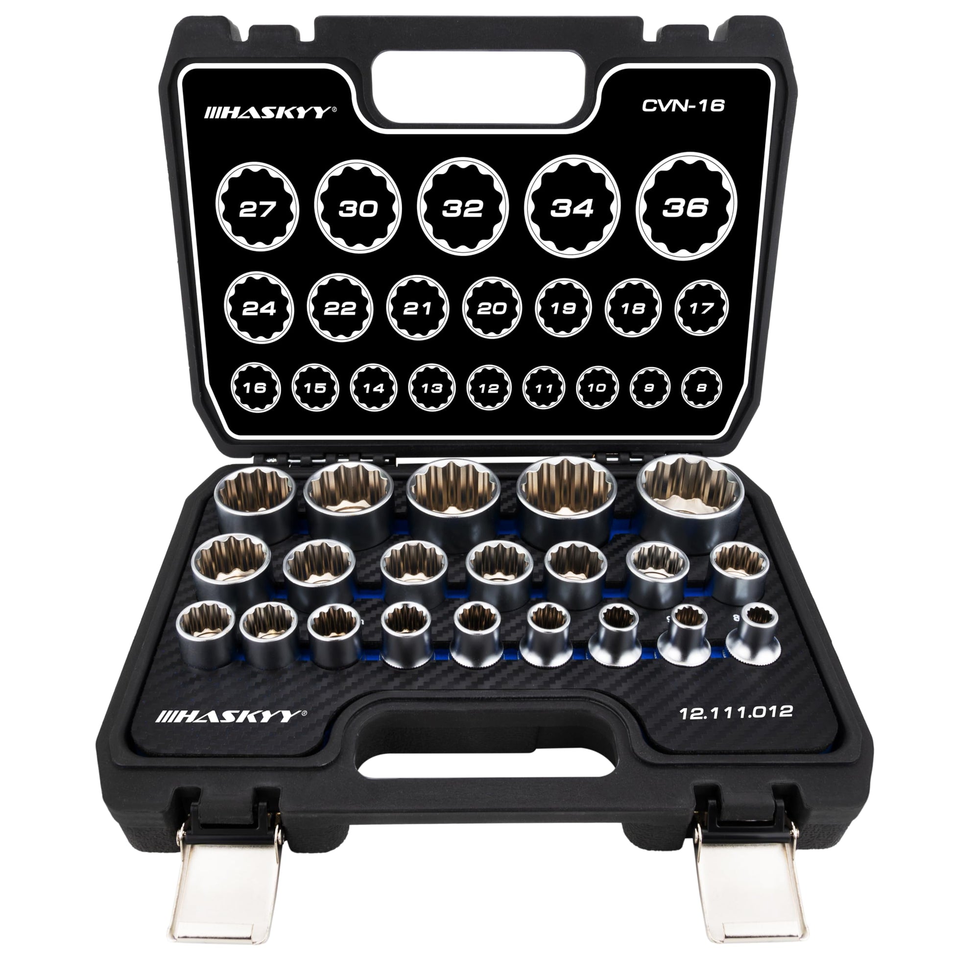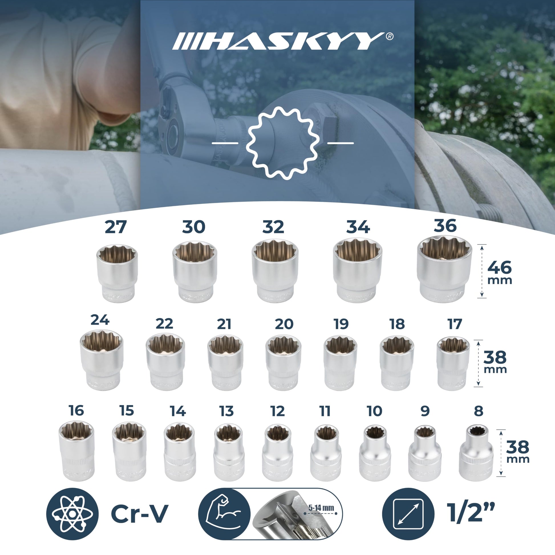 HASKYY Triple Square Nut Socket Set 1/2 Inch Nuts 12-Point Socket Wrench 8-36mm Set
