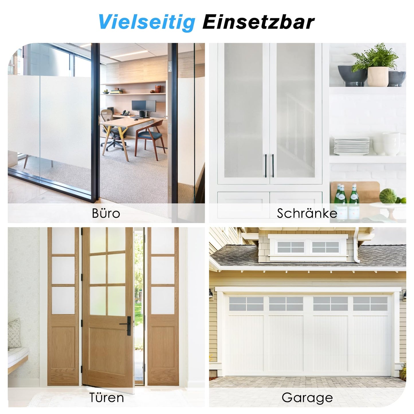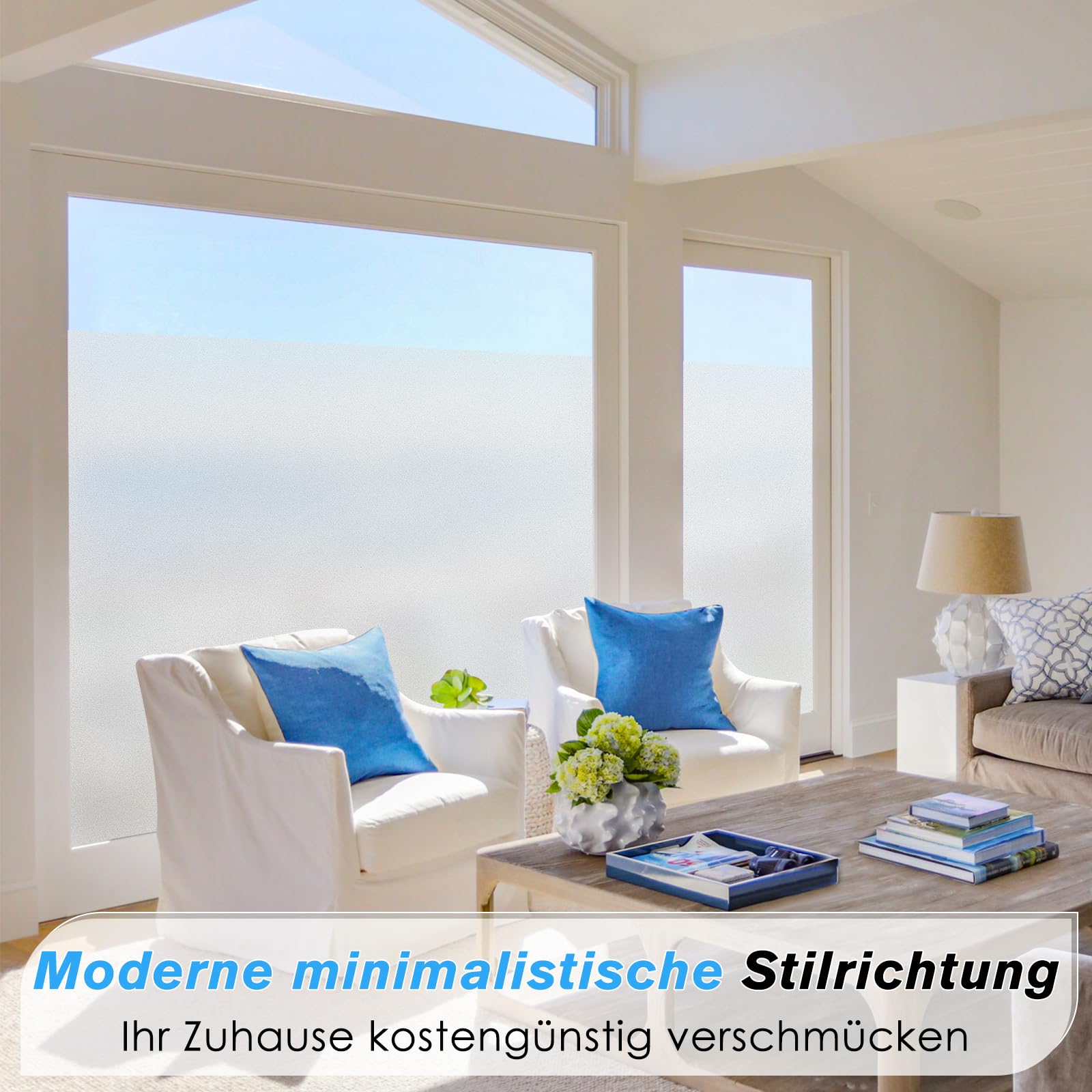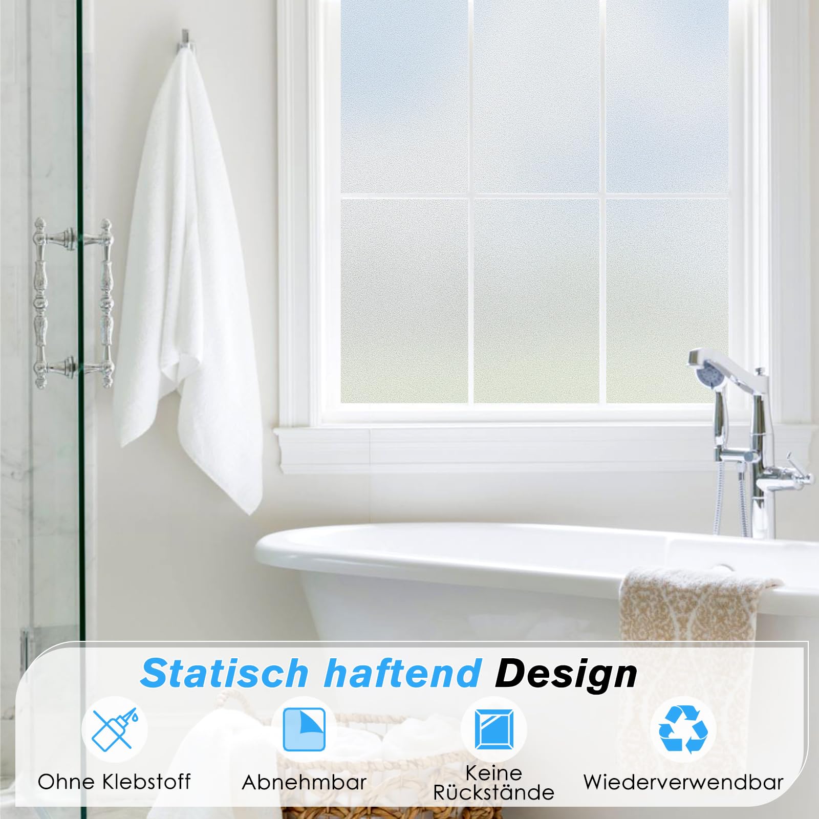 ["Privacy Window Film: The frosted privacy film with high privacy protection can fend off unwanted views from outside and provide you with a relaxed private space. Privacy window film is suitable for your office, bathroom, bedroom, living room etc","No Glue & Reusable: Super Static Cling Design without adhesive, this self-adhesive frosted window film cuts off the chemical substances for easy use. Easy to remove and reuse without leaving residues","Easy Installation: The privacy window film is easy to cut and install in minutes with water. Works perfectly for years on any smooth glass surface. Important: Please remember to remove the backing film of the window film before installation","Decorative Window Film: The classic white matte finish gives your home decor style and function. You can cover the entire window area or cut the window adhesive film to different sizes to give your window a special look. Great alternative to expensive curtains or blinds","UV Blocking: The frosted window film can effectively block 84% of UVA rays and 99% of UVB rays. The opaque window film filters out dazzling light and protects your delicate furniture from sun damage, fading, and cracking. Opaque frosted window film also helps your plants avoid direct sunlight"]