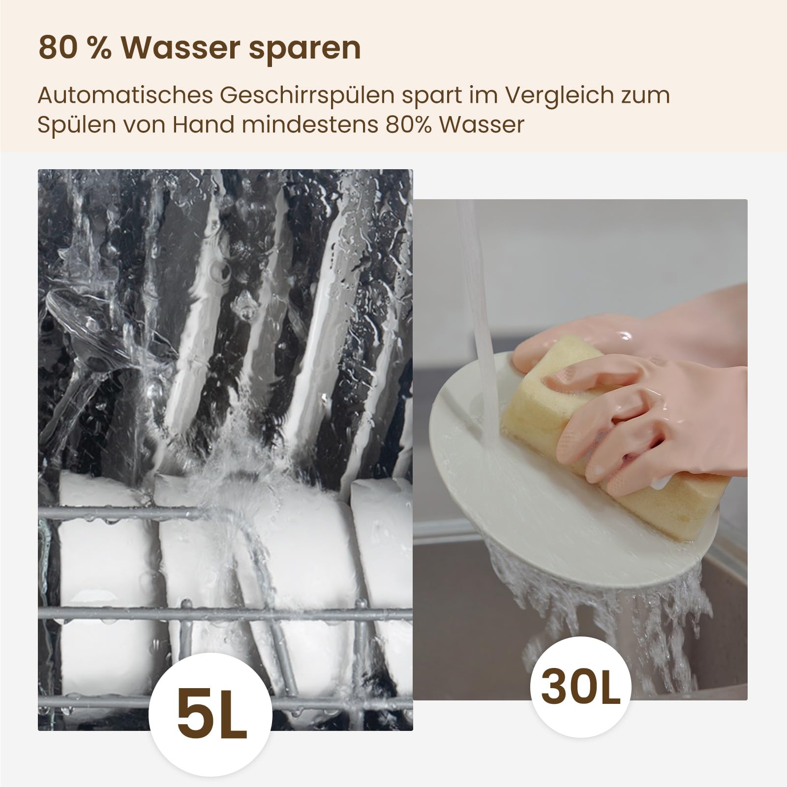 ["ENERGY SAVING"] The HAVA R01 mini dishwasher only consumes 5 liters of water per cycle, which is only 1/4 of the water used for handwashing - reducing water consumption by 75%. With a power of 950 W, this device is an excellent choice for energy-saving for any family. 【NOTE】Use only special dishwasher detergent. Capsules or liquid/powder detergent can be used. The detergent dispenser should be filled with approximately 5.7 to 8.5 g of detergent.