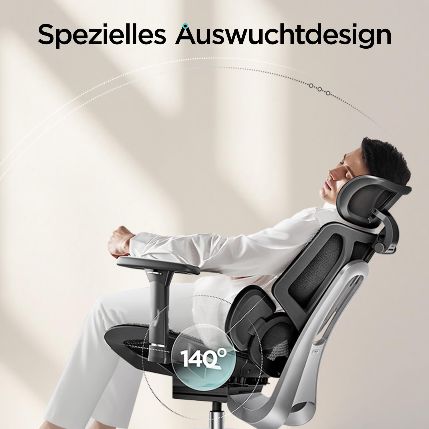 "Comfortable sitting and tilting The seating comfort of the ergonomic office chair Hbada E3 is excellent as well. The fully breathable and durable mesh design and the 5 cm adjustable seat depth ensure cool sitting and support the leg length of different body sizes and postures precisely. When you're tired, simply lean back and take a nap with the comfortable 140° tilt and gravity-sensitive chassis."