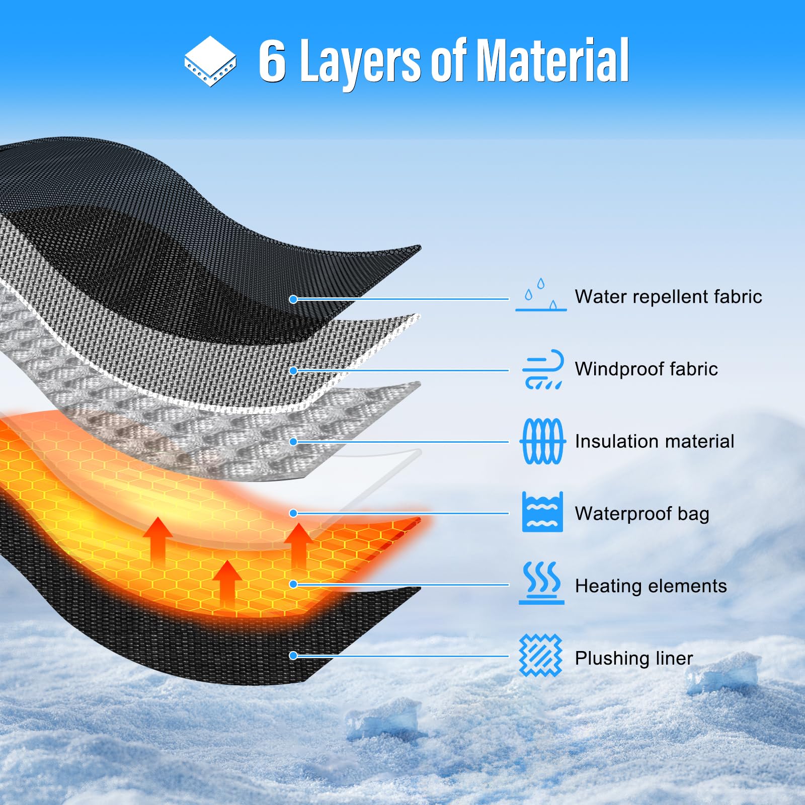["【3 Temperature Levels】 MRAWARM USB rechargeable heated gloves, powered by 2 5V-6000mAh Li-Polymer batteries, help you set the most comfortable temperature from 40°C to 70°C according to your needs. It can keep your hands warm for up to 5 hours in winter weather. Get it now, say goodbye to cold hands tomorrow.","【Touchscreen Heated Gloves】 The electric heated gloves are coated with conductive leather on the index finger. Cotton is soft and warm, allowing fingers to move flexibly and without resistance. You can use your phone freely in cold winter without taking off the gloves. The water scraper can scrape water or snow from the phone screen.","【Waterproof Heated Gloves】 The surface of the heated gloves is made of 100% polyester knit laminated with a PU membrane. It is super durable, waterproof, windproof, non-slip, and insulating. An inner waterproof TPU layer can prevent water from wetting the cotton, keeping your hands dry and warm even in snow or rain.","【Stable and Long-lasting Heat】 The fingers and palm of the heated gloves are covered with heating wires. So the rechargeable electric heated gloves not only warm your hands quickly and evenly, but also accelerate blood circulation and relieve Raynaud's, etc.","【Perfect Gift for Winter】 Suitable for all kinds of outdoor sports such as camping, hiking, hunting, fishing, motorcycling, cycling, horse riding, skiing, skating, climbing, running, walking, etc. Electric rechargeable heated gloves - a warm gift for yourself, your lover, your friends, your parents, your elders on Thanksgiving, Christmas, and Valentine's Day.","【How to use them】 Connect the battery to the DC port in the pocket and zip up. Then press and hold the power button on the glove for 3 seconds to activate the heating function. By pressing the button briefly, you can adjust the temperature: Red for high, Blue for medium, and Green for low temperature."]