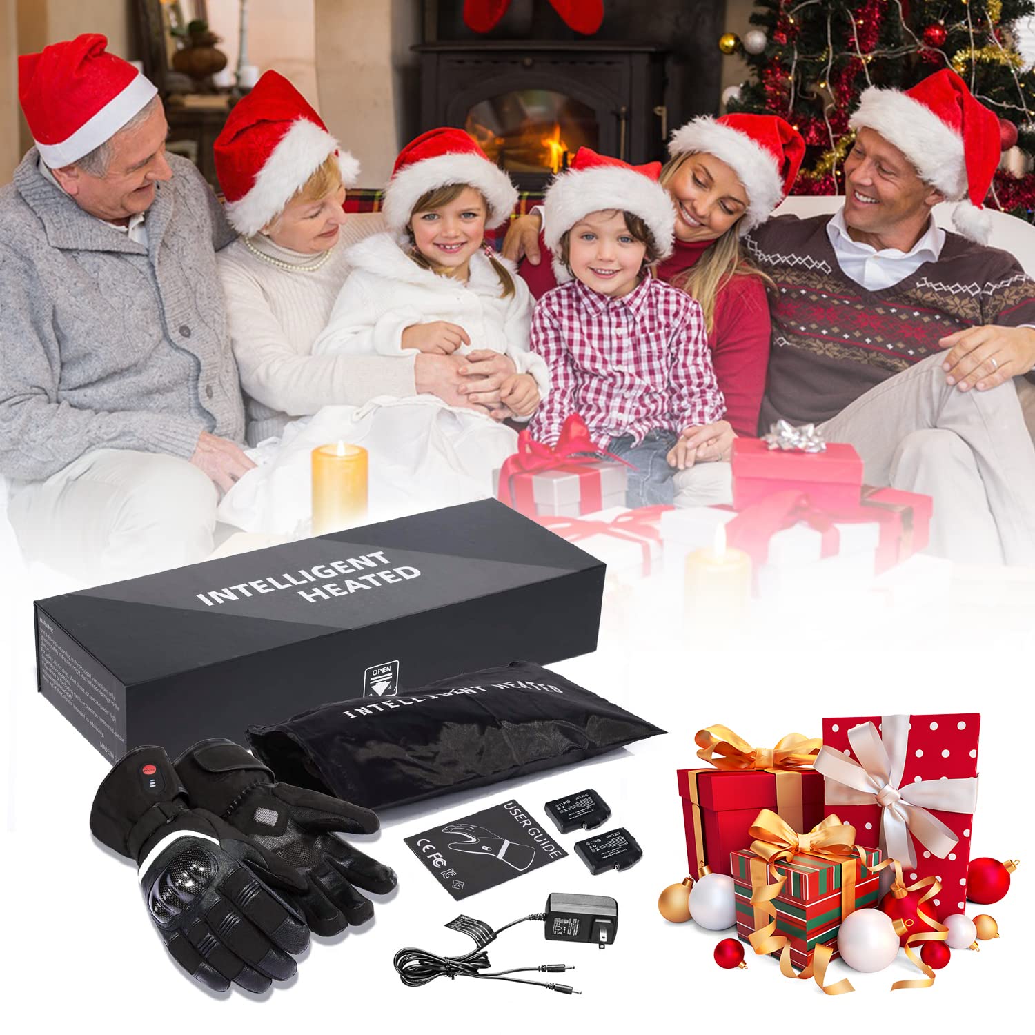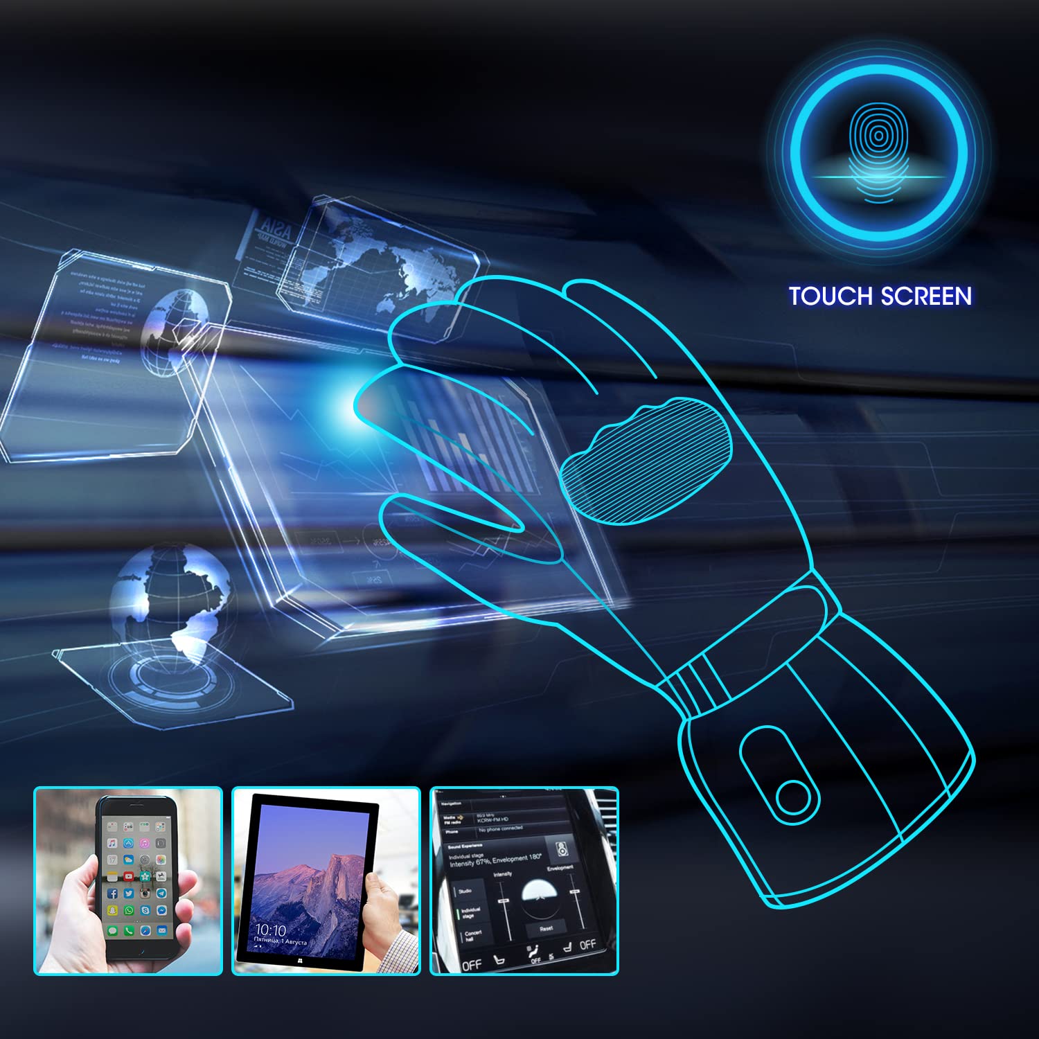 "Professional heated motorcycle gloves: The outer layer of palm and fingers is made of soft sheepskin and polyester fibers, the inside consists of insulated cotton, heating elements, wind and waterproof membranes, and a breathable, comfortable wool lining, which is waterproof, windproof, and breathable. Carbon fiber on the back of the hand, shock absorbing foam on the palm, and adjustable Velcro closure at the wrist protect the hands from injury. Heating element and touchscreen sensor: The back of the hand, 5 fingers, and fingertips are covered by safe heating elements. The updated winter gloves use a far infrared fiber heating element to promote hand circulation. The winter gloves are ideal for people suffering from Raynaud's disease, permanently frozen hands, arthritis, circulatory disorders, and stiff joints. The glove lining features touchscreen recognition on the index finger and thumb. Large battery capacity and 3 temperature settings: The men's cycling gloves include 2 rechargeable 7.4V 2200mAh lithium-ion batteries and a three-stage temperature controller for easy adjustment. The LED light of the controller is very bright at night, which can serve as a safety warning. The heated gloves work for up to 2.5-6 hours (under full charge). Giving you hours of warmth and comfort."