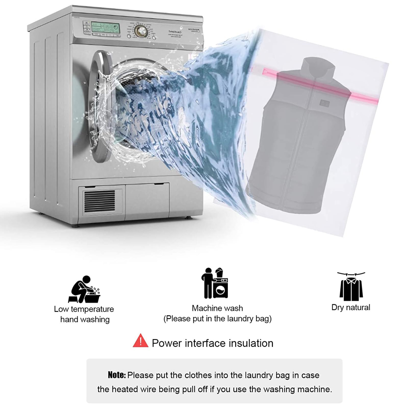 "Safety guarantee, integrated heat protection module: Our heating clothing has overheat protection and short-circuit protection. If the temperature is too high, the temperature is automatically lowered to ensure your safety. ATTENTION: 1, pregnant people, disabled people (limited mobility, no feeling below the chest, wheelchair users, etc.) or people with a pacemaker installed, should not use the device."