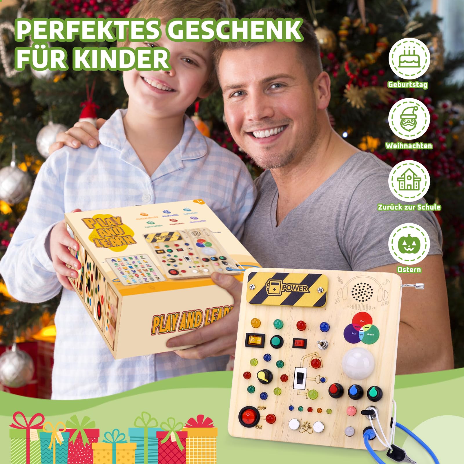 Hello! Montessori toys from 1 year Busy Board Activity Board toys from 2 years Wooden toys with 13 switches 24 LED lights Toys Sensory Learning Toys