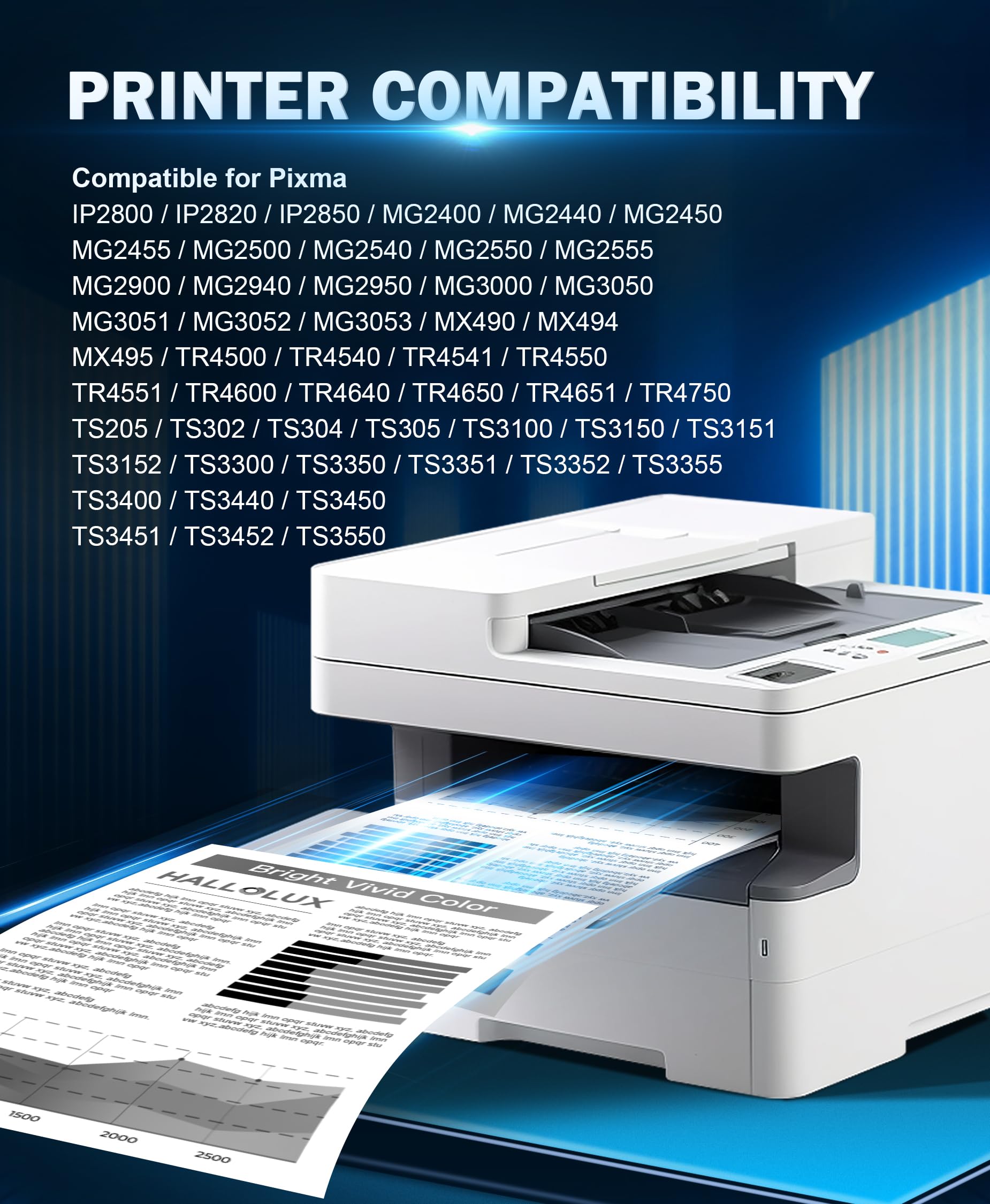 ["【Model】HALLOLUX PG545XL PG-545XL Black Printer Cartridges Replacement for Canon PG 545 XL 545XL Cartridges (Non Original)", "【Printer Model with】Canon Pixma MX490 MX495 TR4550 TR4551 MG2550s MG2555s TS3150 TS3151 MG3050 MG3051 iP2800 iP2850 iP2840 iP2855 MG2400 MG2450 MG2455 MG2500 MG2550 MG2900 MG2920 MG2950 MG2555 MG2950S MG2955 MG3052 MG3053 TS205 TS305 Printer", "【High Page Yield】400 Pages Per PG-545XL PG 545 XL 545XL Black Printer Cartridges (Based on 5% Coverage)", "【Content】2-Pack PG-545XL 545 XL Black Printer Cartridges for canon tr4500 tr4551 printer cartridges (Note: Our products come in old and new packaging, delivery is random, but the product quality is the same)", "【Product Benefits】PG-545XL PG545XL Printer Cartridges for MX490 MX495 printer cartridges print sharp black documents"]