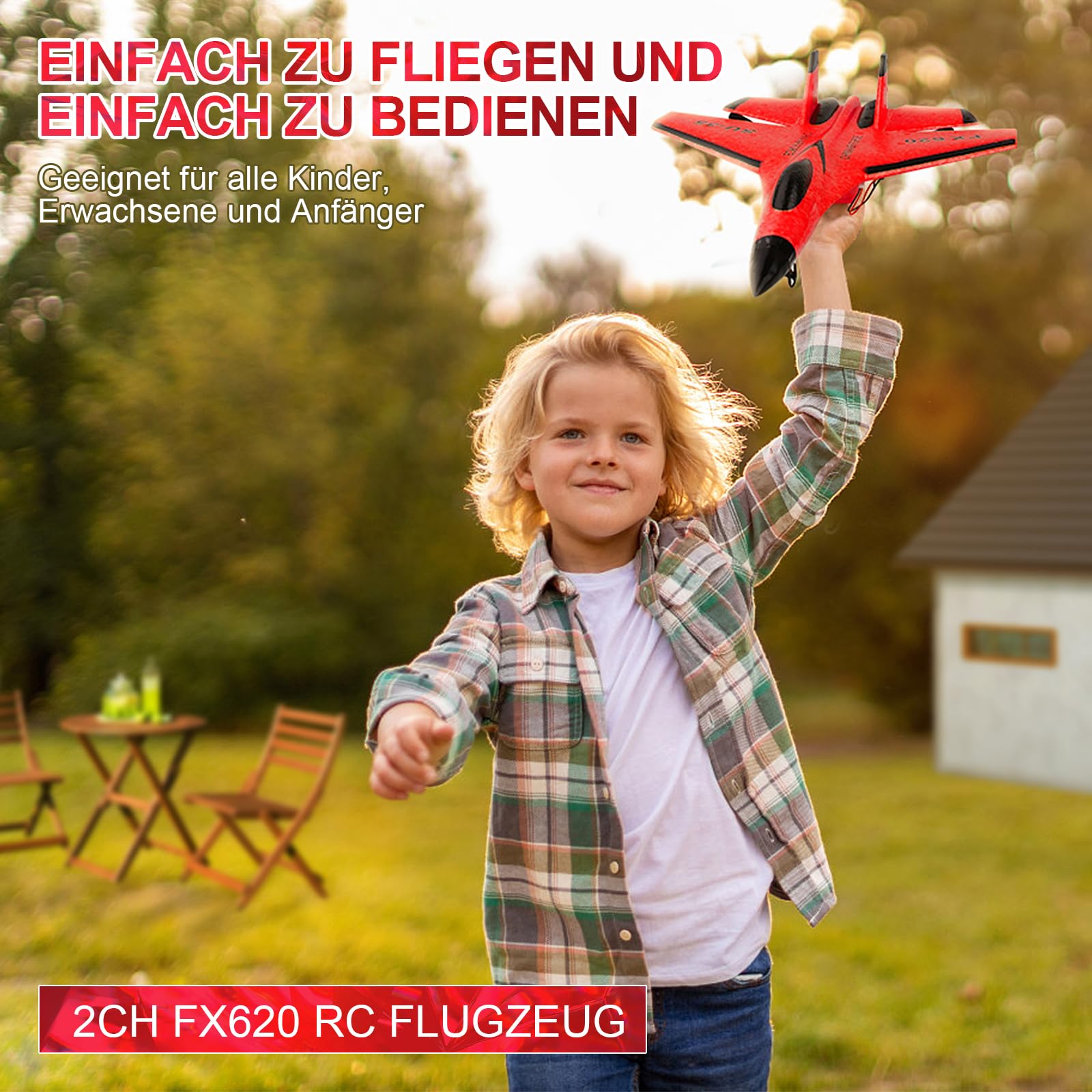 Henakmsl RC Airplane 2.4GHz SU35 Fighter RC Airplane 2CH Remote Control RTF for Beginners, Kids, and Adults, FX620 Airplane Toy with Colored Lights USB Charging Red