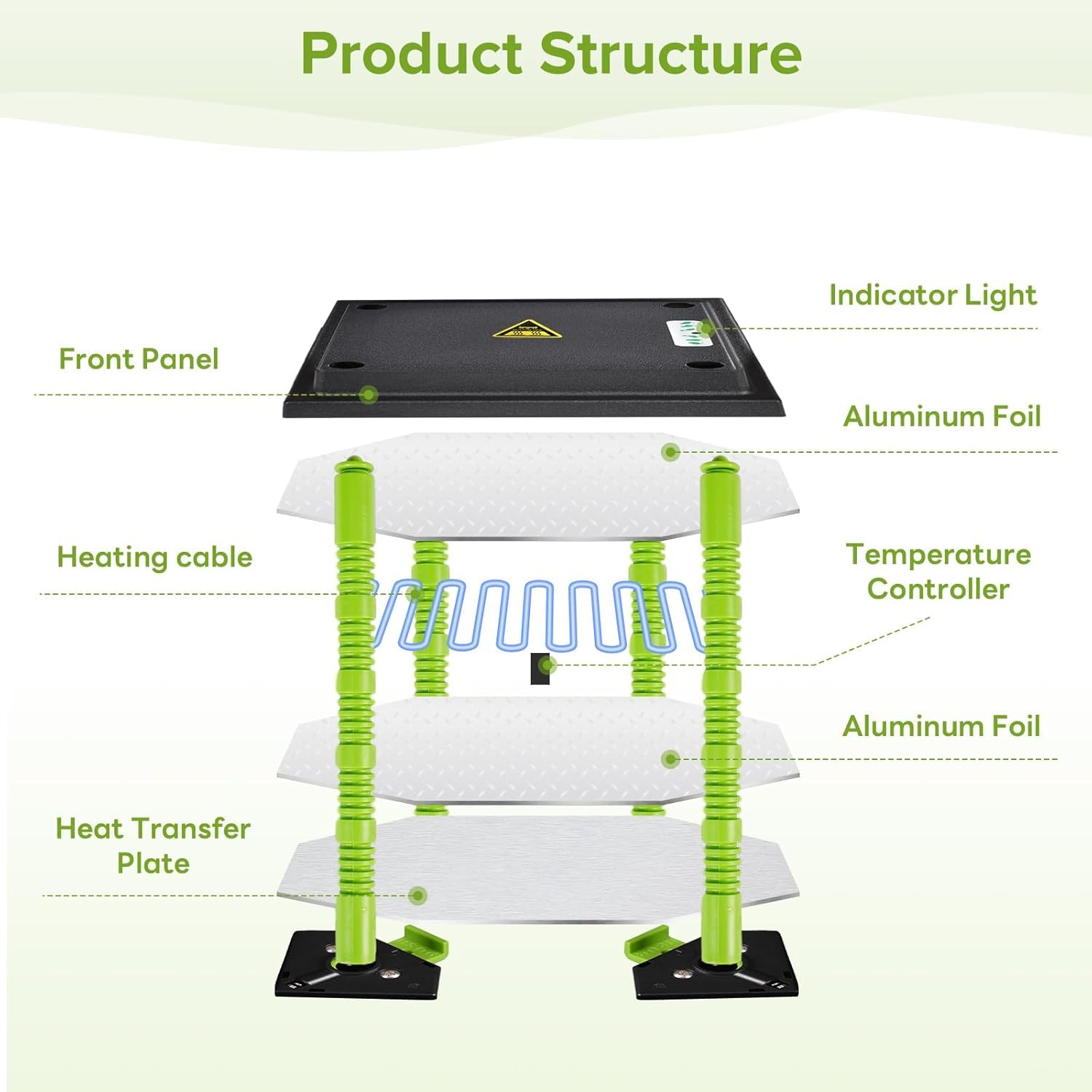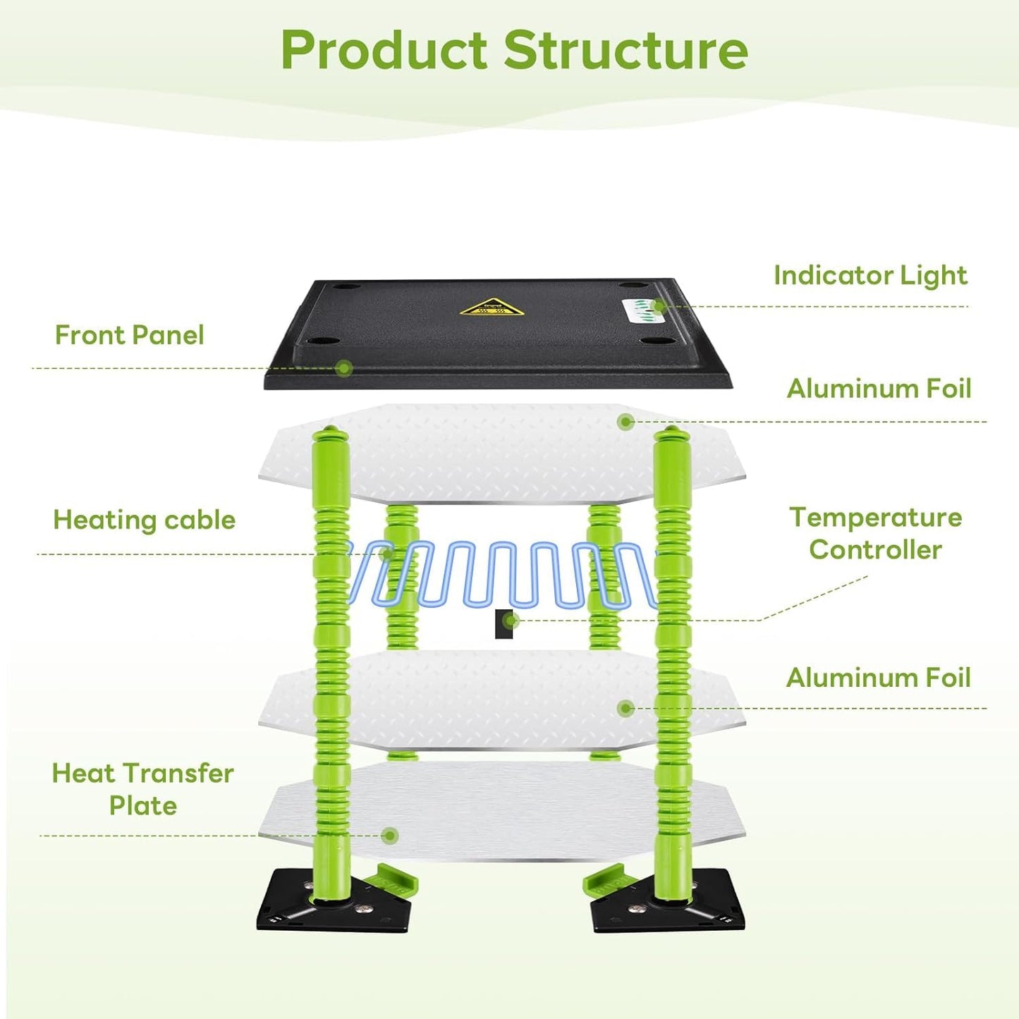【Double Protection】The heating plate is equipped with a built-in thermostat, automatically stopping heating when the internal temperature of the device exceeds the threshold. And a fuse to protect against short circuits. No worries about overheating or burns.