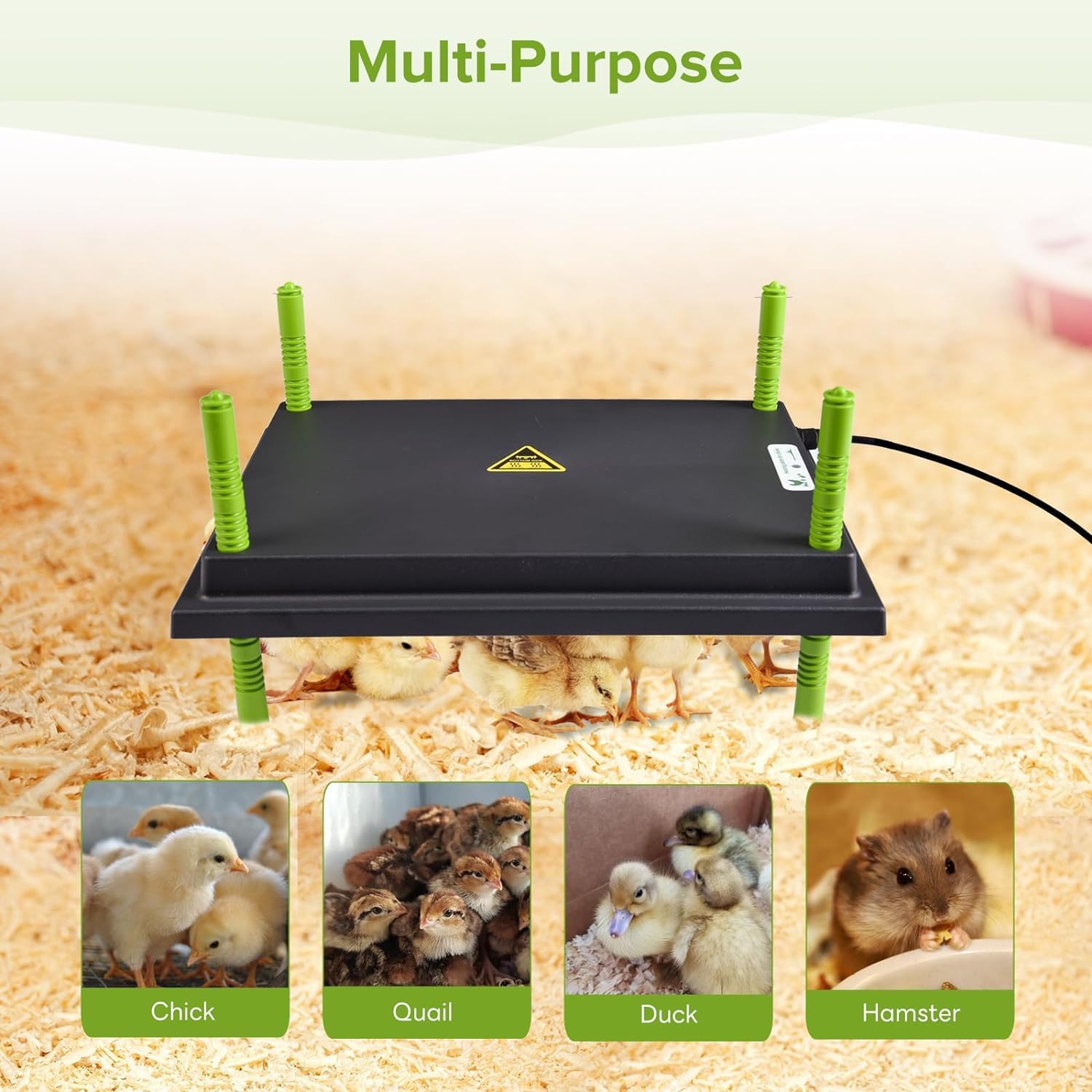 ["Practical Heating Plate】The chick heating plate is made of high-quality flame-retardant materials and metal, heats evenly, sturdy and durable. Low power consumption with 30W power. Easy installation in a few steps, easy to clean.
