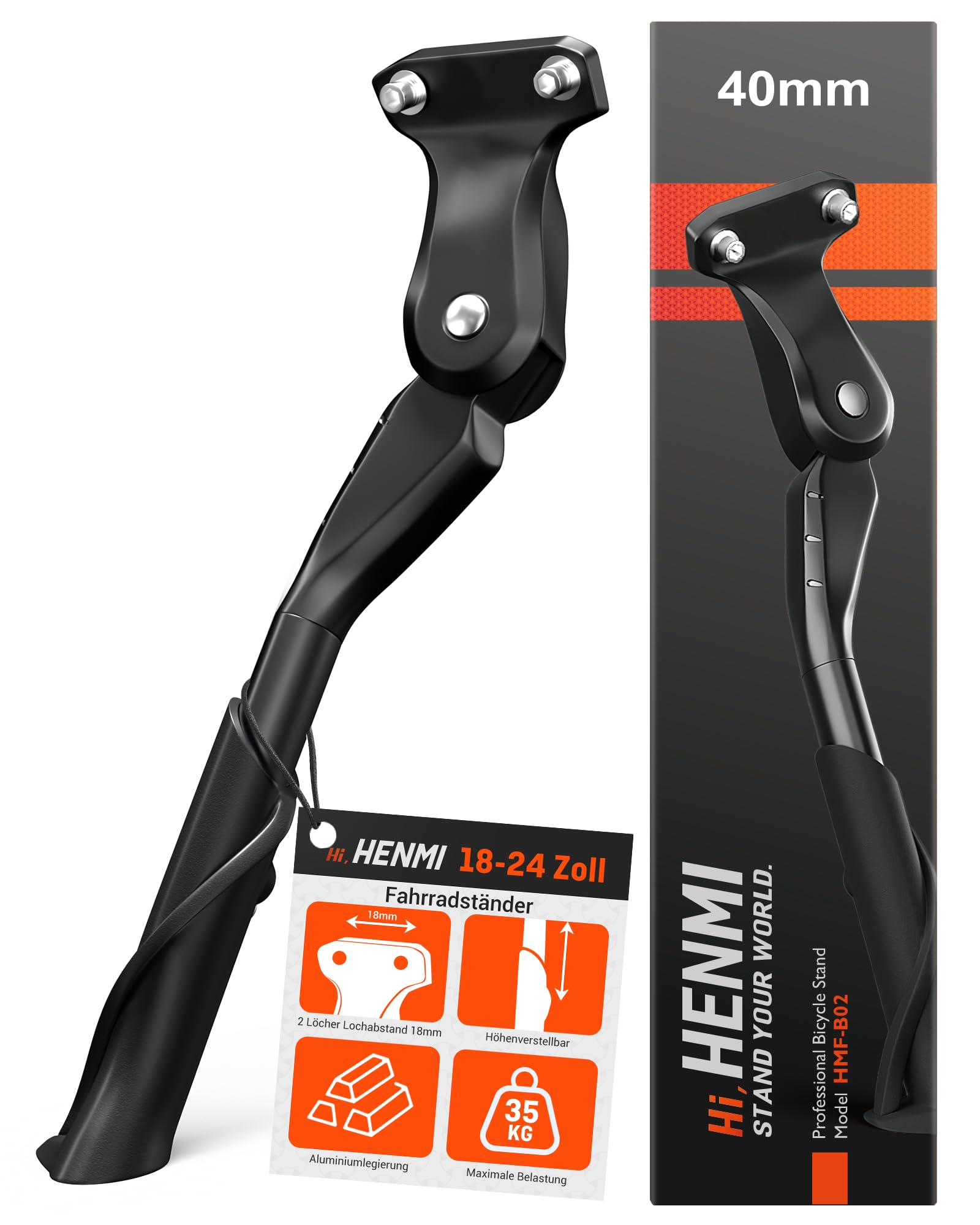 HENMI Bike Stand 18-24 Inch Kids Bike Stand with Holes, 40mm Hole Spacing M6 Screws, Stable Kids Side Stand for Mountain Bike, Road Bike