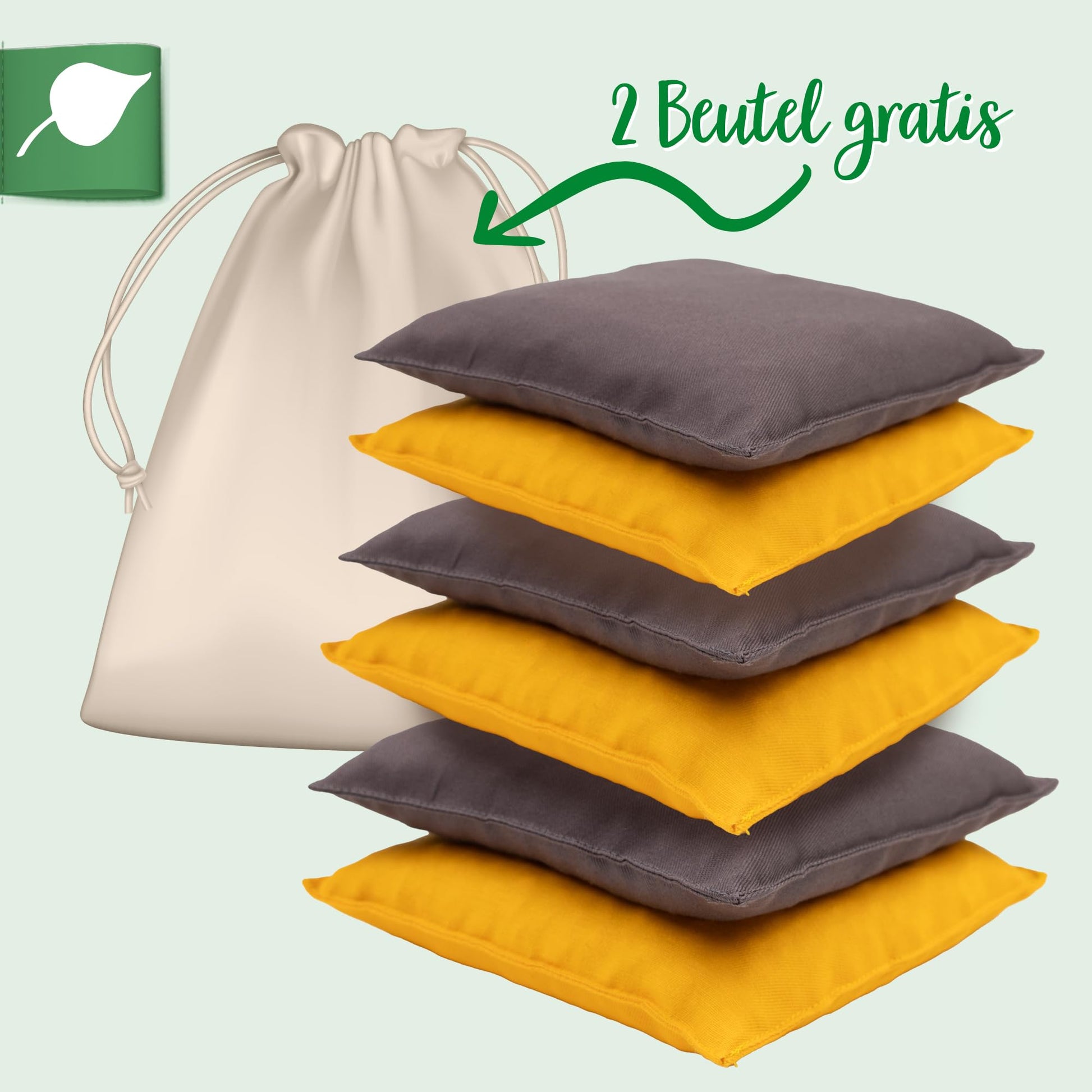 Herbalind Original Cornhole Game Bean Bag Set - high-quality toss bags 15x15cm, ideal for outdoor Cornhole board game, made from 100% cotton with 400g corn filling (Yellow and Anthracite)