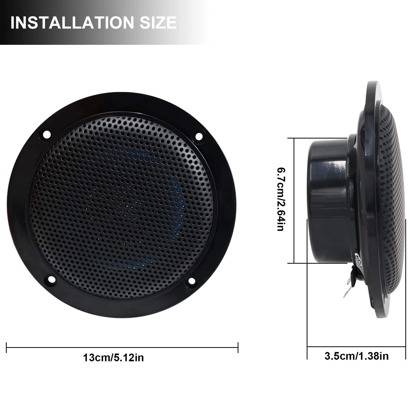 "Bluetooth connection compatible: Excellent bass sound and the ability to wirelessly connect to any device. Coverage can be up to 20 meters high and is perfect for bathrooms, living rooms, kitchens, pools, outdoors, boats, RVs, motorhomes, and hot tubs"