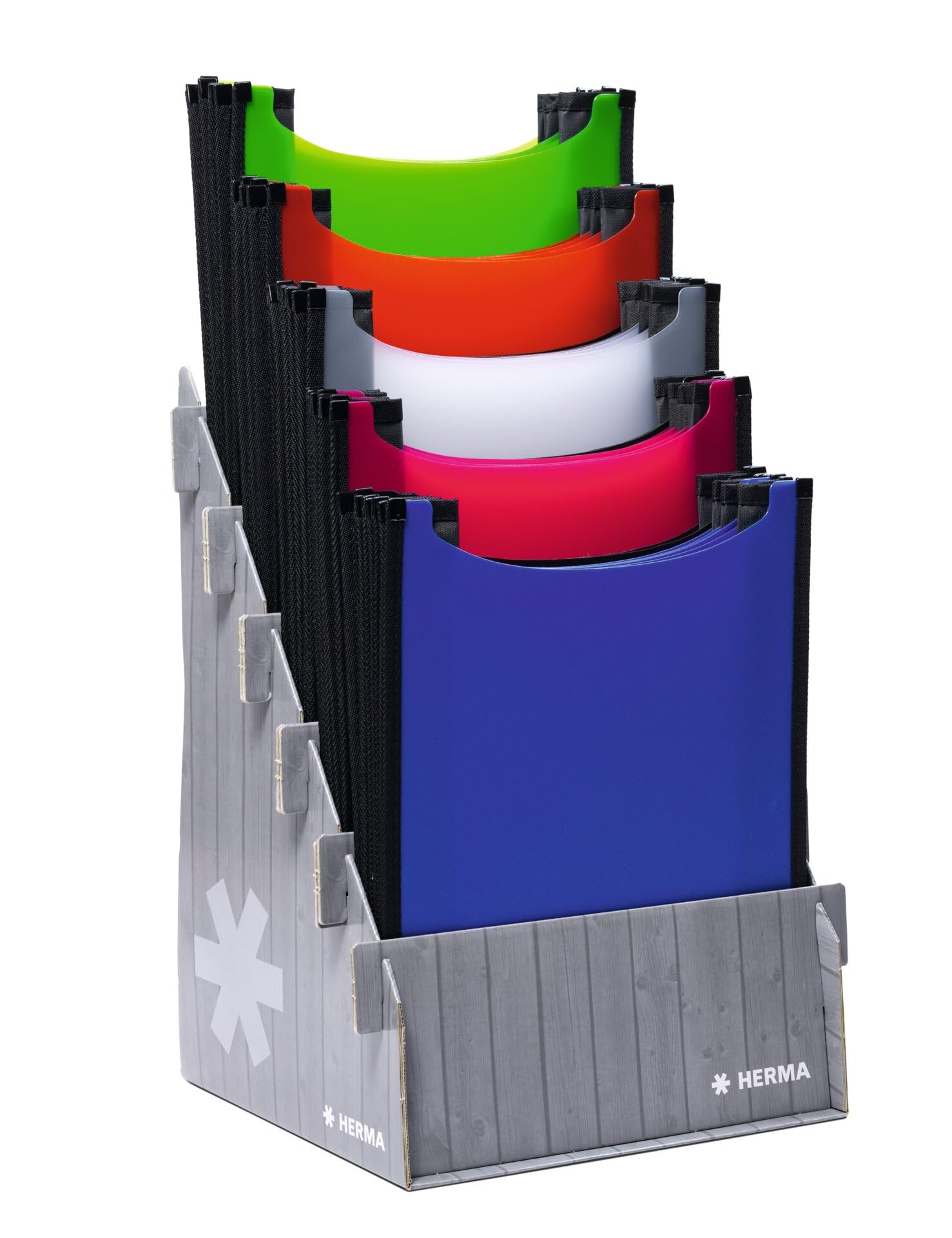 Includes: 18 x HERMA 20130 Flexi A4 File Box Transparent Assortment, Dimensions: 13.78 x 10.24 x 2.76 inches (Length/Width/Height) - 3 x White, Blue, Pink, Black, Red, Green"