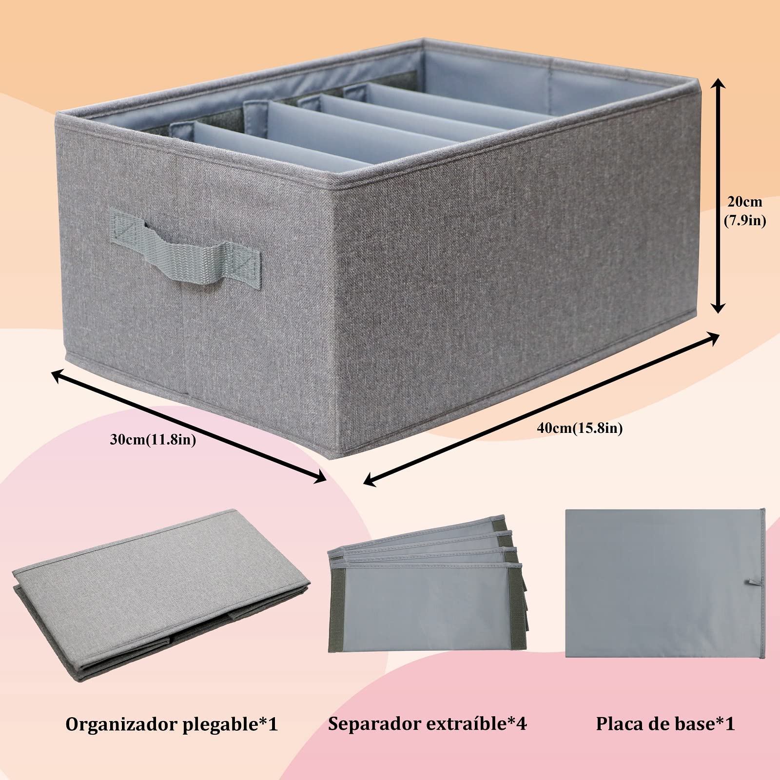 ["Perfect size and adjustable dividers"] Each Hersvin wardrobe organizer is 40 x 30 x 20 cm in size and fits most closets. They come with 4 adjustable and removable dividers to accommodate at least 1 grid and up to 5 grids for storing various clothing items such as jeans, sweaters, hoodies, T-shirts, jackets, coats, dresses, towels, bedding, and more.