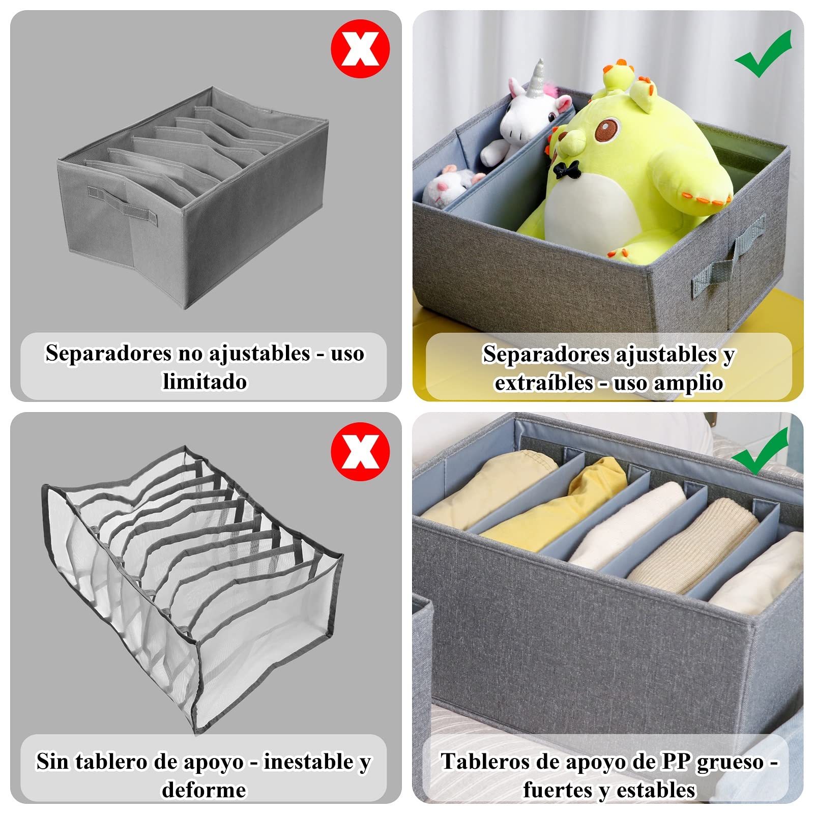 ["Stackable and foldable design"] Our fabric storage containers have durable and thick PP support plates, making them stackable so you can easily find clothes at a glance and take items out easily. They maintain their shape for a long time without collapsing or breaking. They can also be folded up in minutes to save space when not in use.