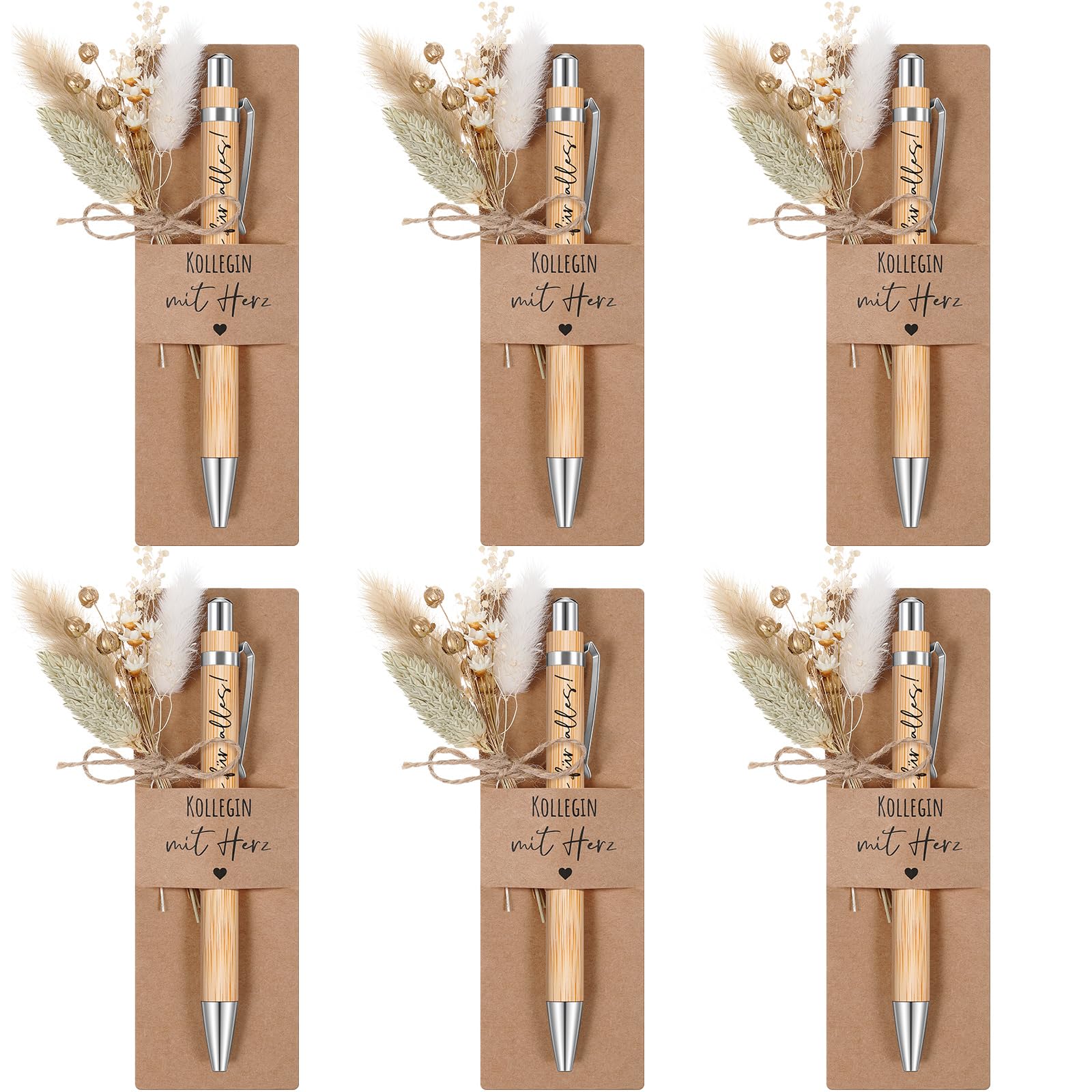 Hestya 6 Sets of Colleague with Heart Gifts Include 6 Engraved Wooden Pens, 6 Real Dried Flower Bouquets, 6 Paper Pen Holders for Farewell Gifts for Teacher, Colleagues, Friends.