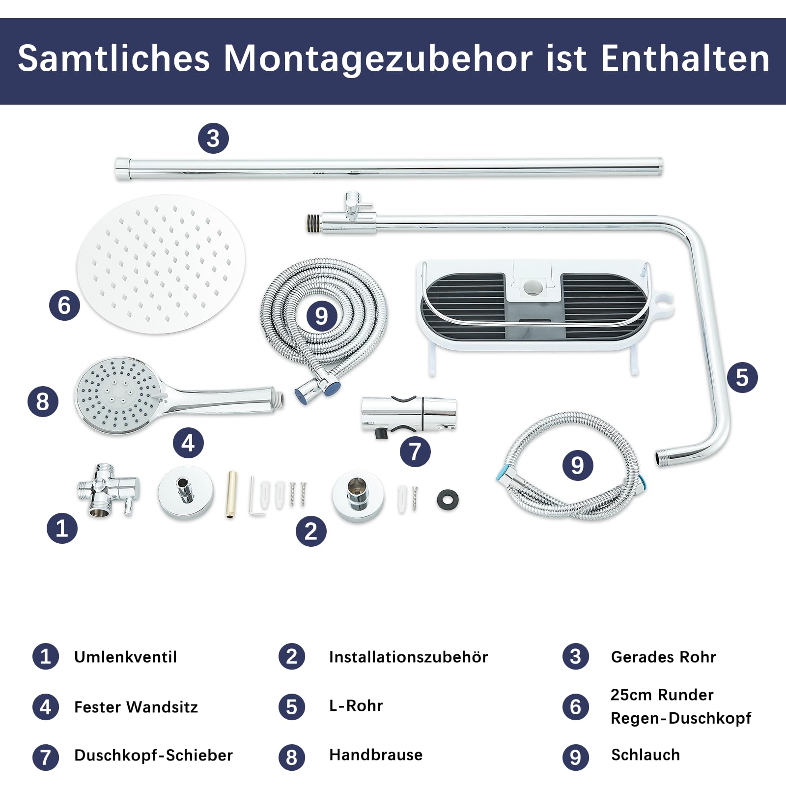 "❤Easy installation: Shower mixer rain shower (size G 1/2) are not complicated to install and suitable for connecting all hot and cold water systems, tankless water heaters, and whirlpools. Both wall brackets are removable, each wall bracket can be attached to the wall with 2 screws. If you have any questions about the installation, you can contact us by email at any time and we will personally explain the installation to you.