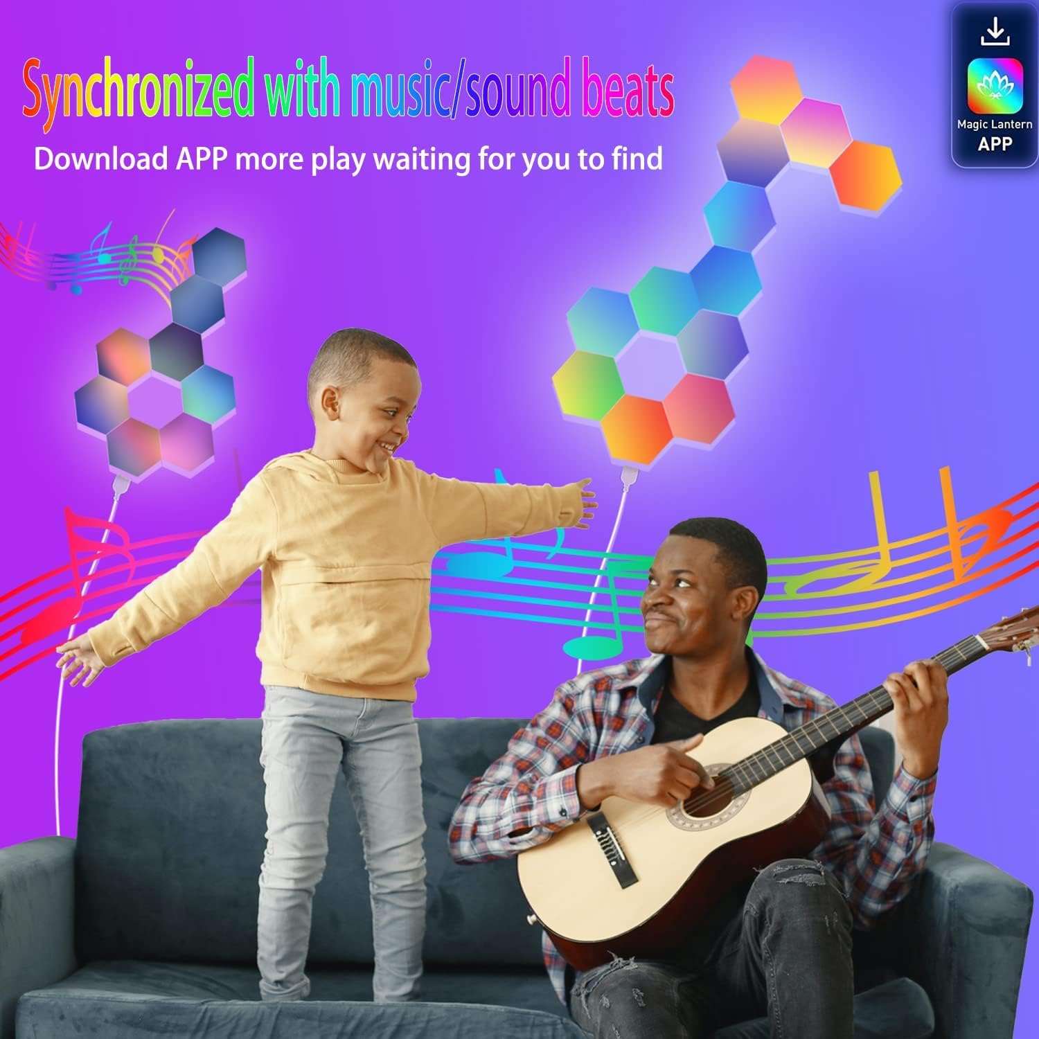 RGB Hexa LED Synchronized Music: Let the hexagon LED wall dance to the music. The LED hexagon light can change colors, speeds, and brightness with the rhythm of the music for home bar wall decor.