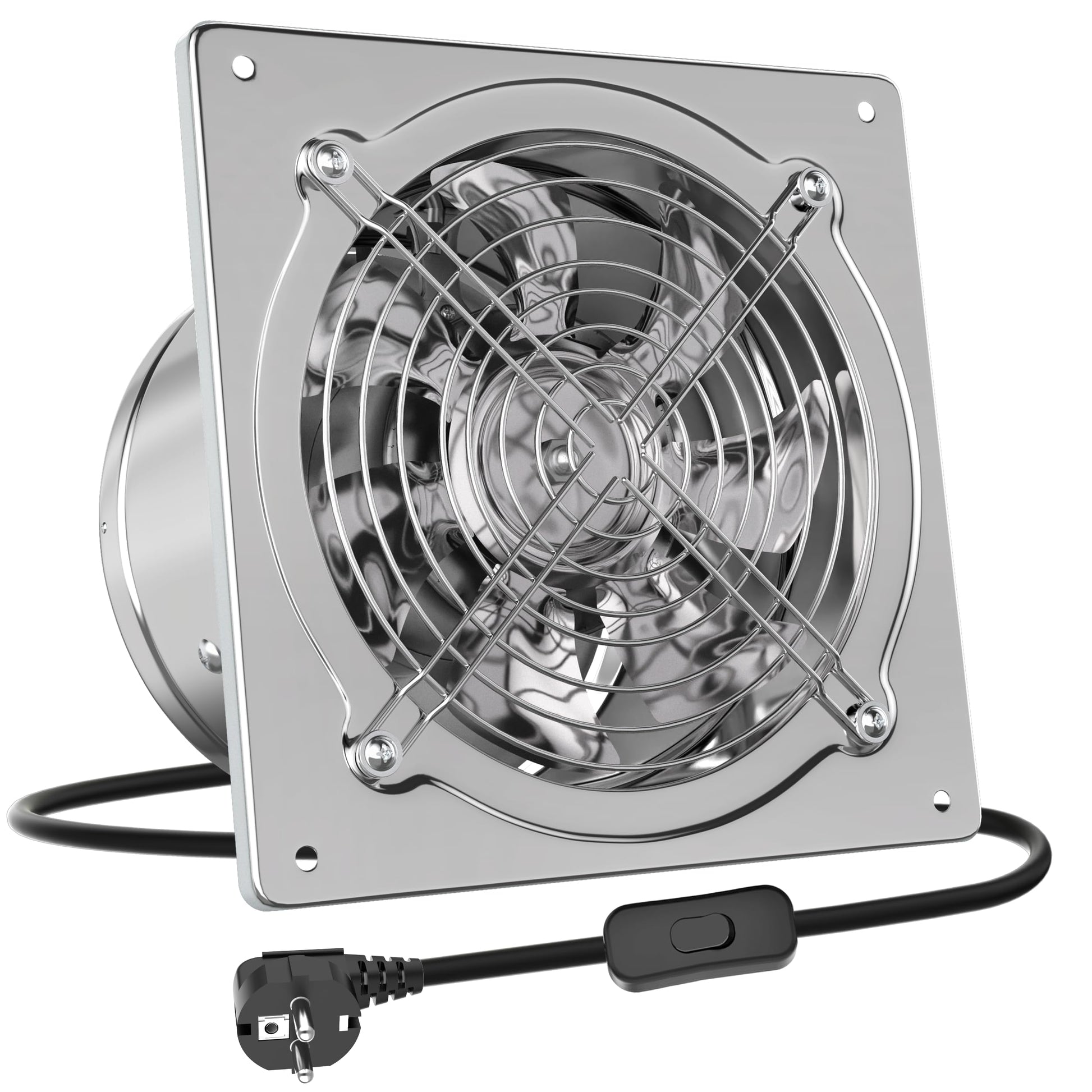 HG Power 200mm Exhaust Fan 980m³/h Bathroom Ventilator Quiet with Backdraft Damper Powerful Wall Fan with EU Plug for Kitchen Bathroom Garage Basement, Silver