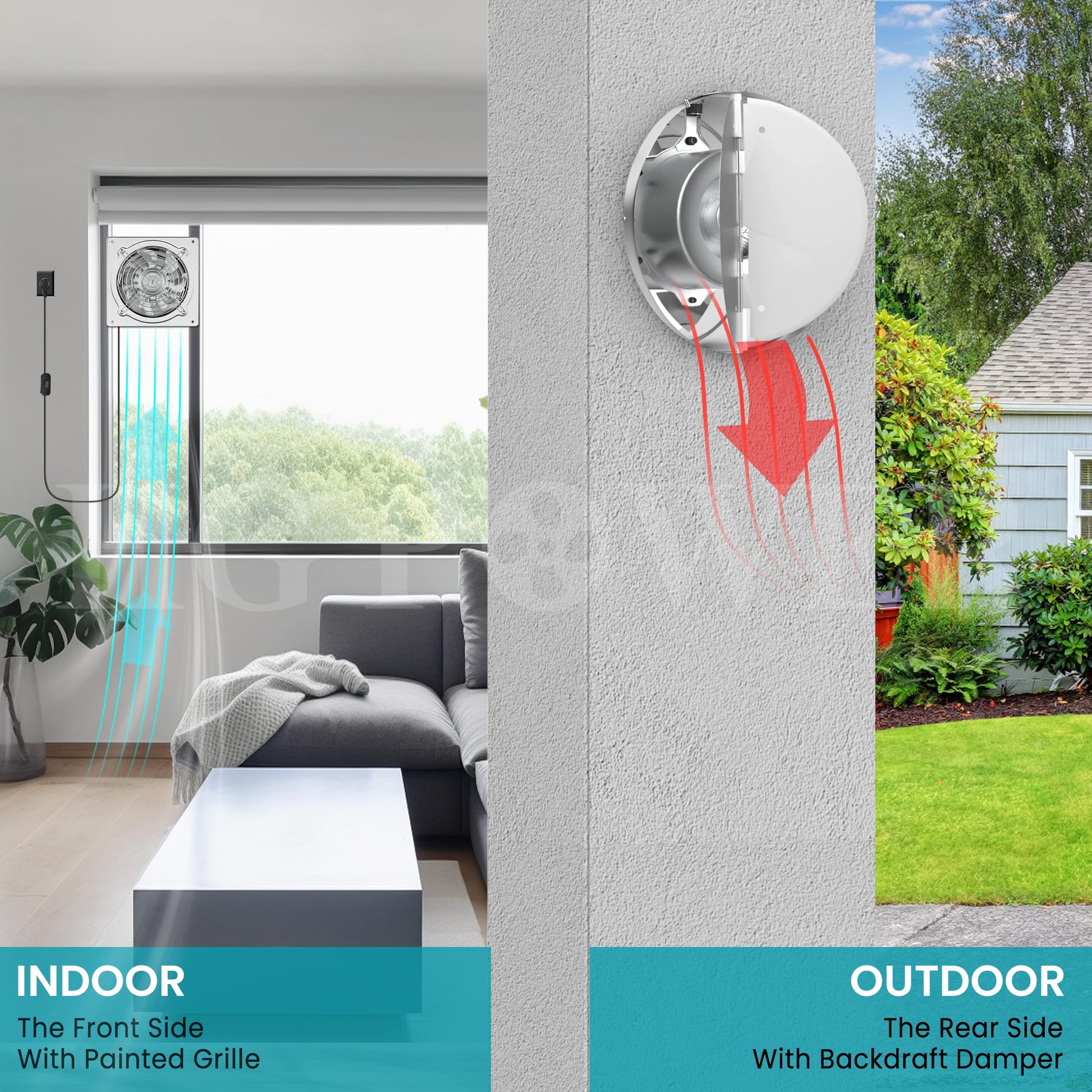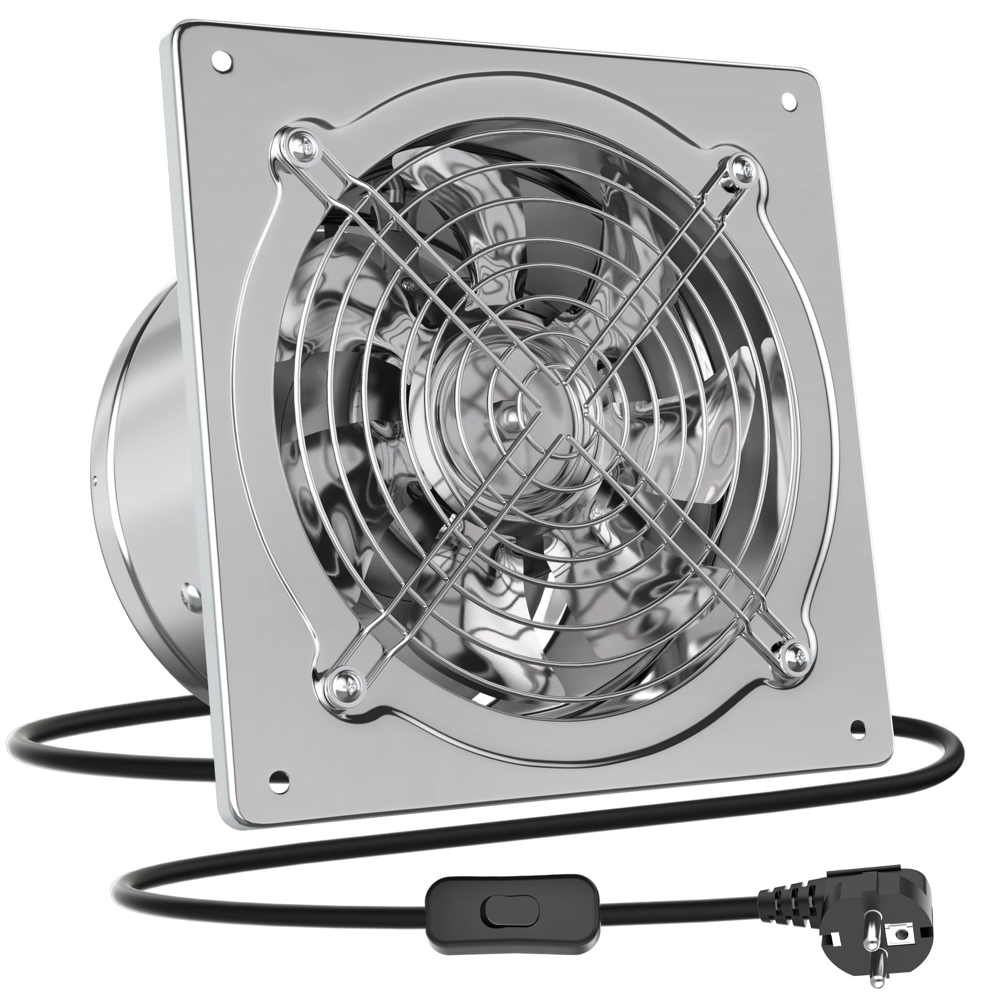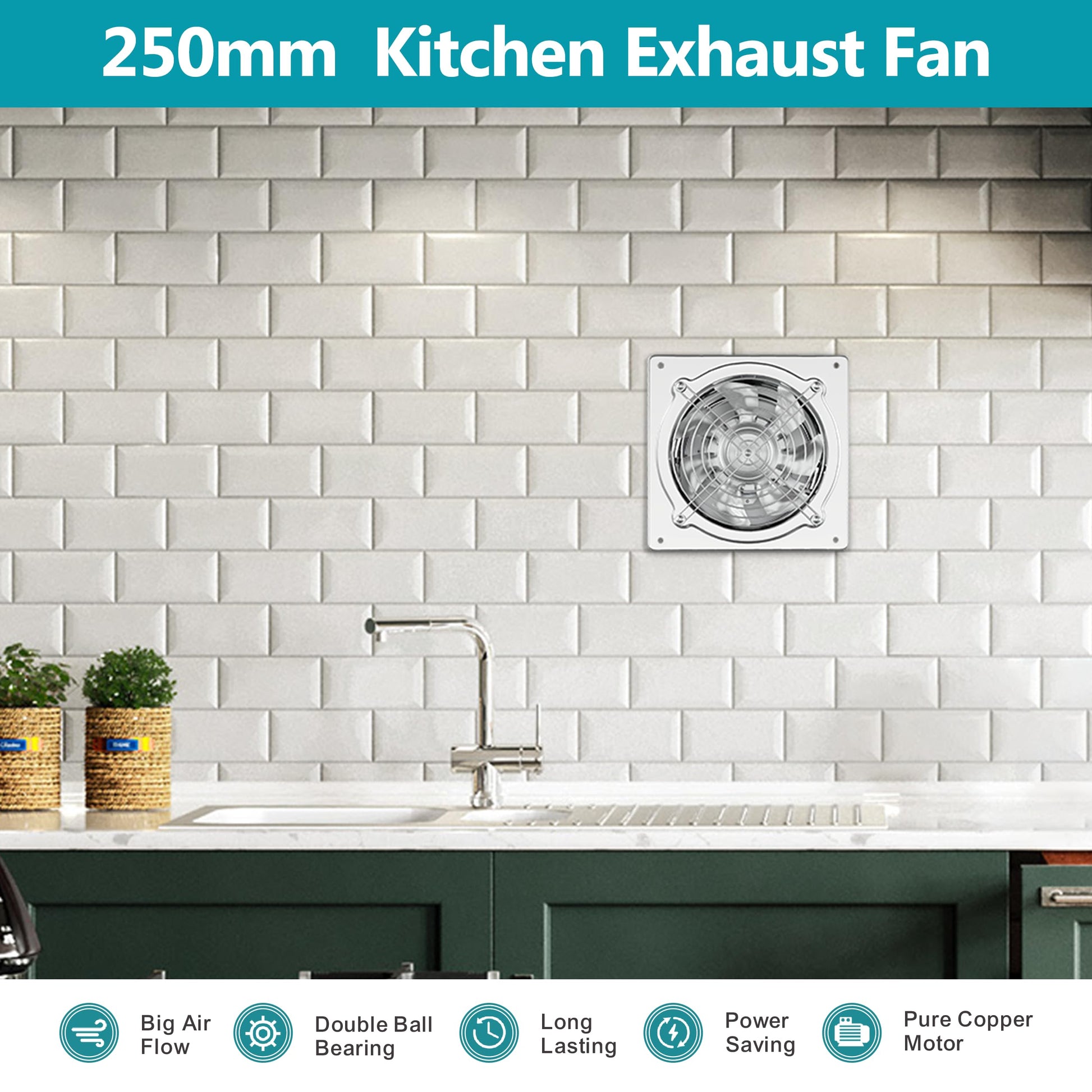["High-performance ventilation This exhaust fan features a durable copper motor. Its quiet and efficient exhaust function effectively eliminates odors and moisture.","Excellent quality The window fan is made of high-quality stainless steel and is not prone to deformation. The check valve on the back opens or closes automatically with the airflow, effectively preventing the entry of insects, dust, and rodents.","Technical specifications Diameter: 250mm (10 inches); Power: 74.5W; Voltage: AC220~240V; Frequency: 50Hz; Air volume: 1680m³/h; Speed: 2580rpm.","Versatile application Suitable for bathrooms, living rooms, bedrooms, kitchens, offices, and other spaces that require continuous or regular ventilation.","Easy installation Can be installed on the wall or ceiling (if installed on the ceiling, the check valve must be removed). The removable design makes cleaning easier. It is recommended to regularly clean dust or oil residues inside the fan to extend its lifespan."]