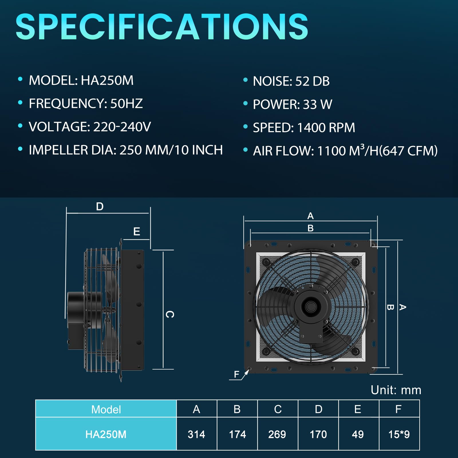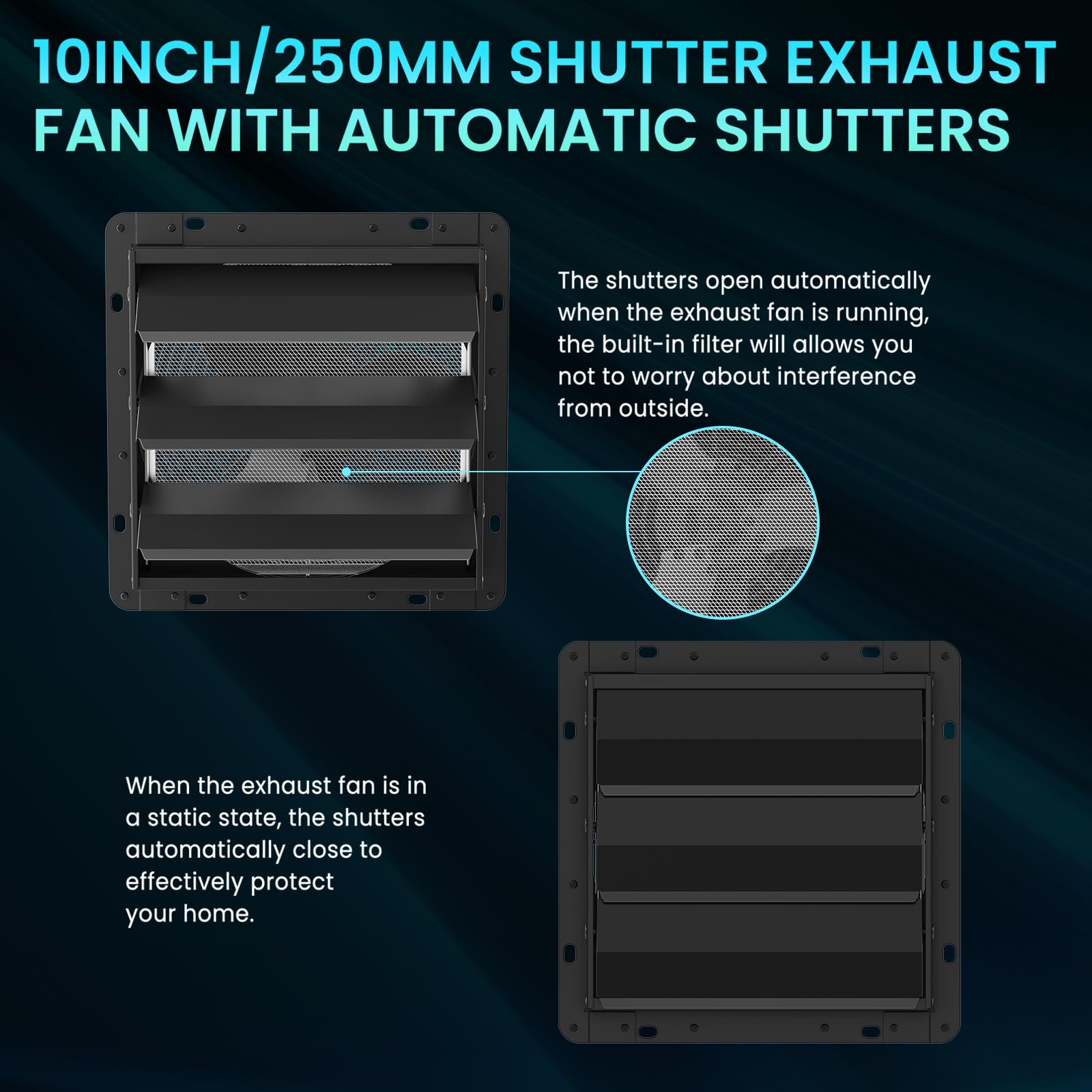 👍Premium material: The 250mm exhaust fan is made of high-quality aluminum and coated with matte black paint, making it rust-free and weather-resistant, perfect for any location you install it in."